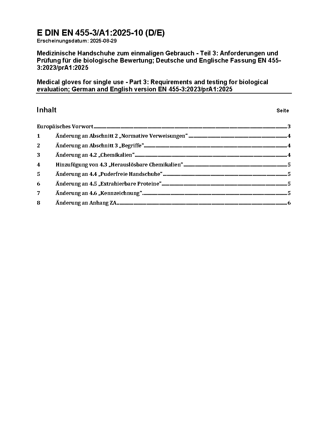 This part of DIN EN 455 specifies requirements for the evaluation of biological safety for medical gloves for single use. It gives requirements for labelling and the disclosure of information relevant to the test methods used.