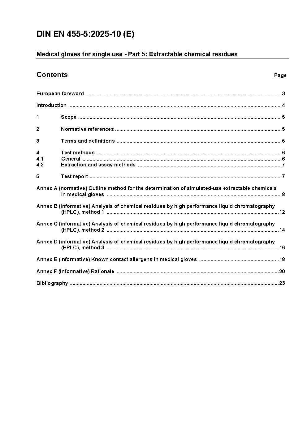 Medical gloves for single use - Part 5: Extractable chemical residues; German and English version prEN 455-5:2024
