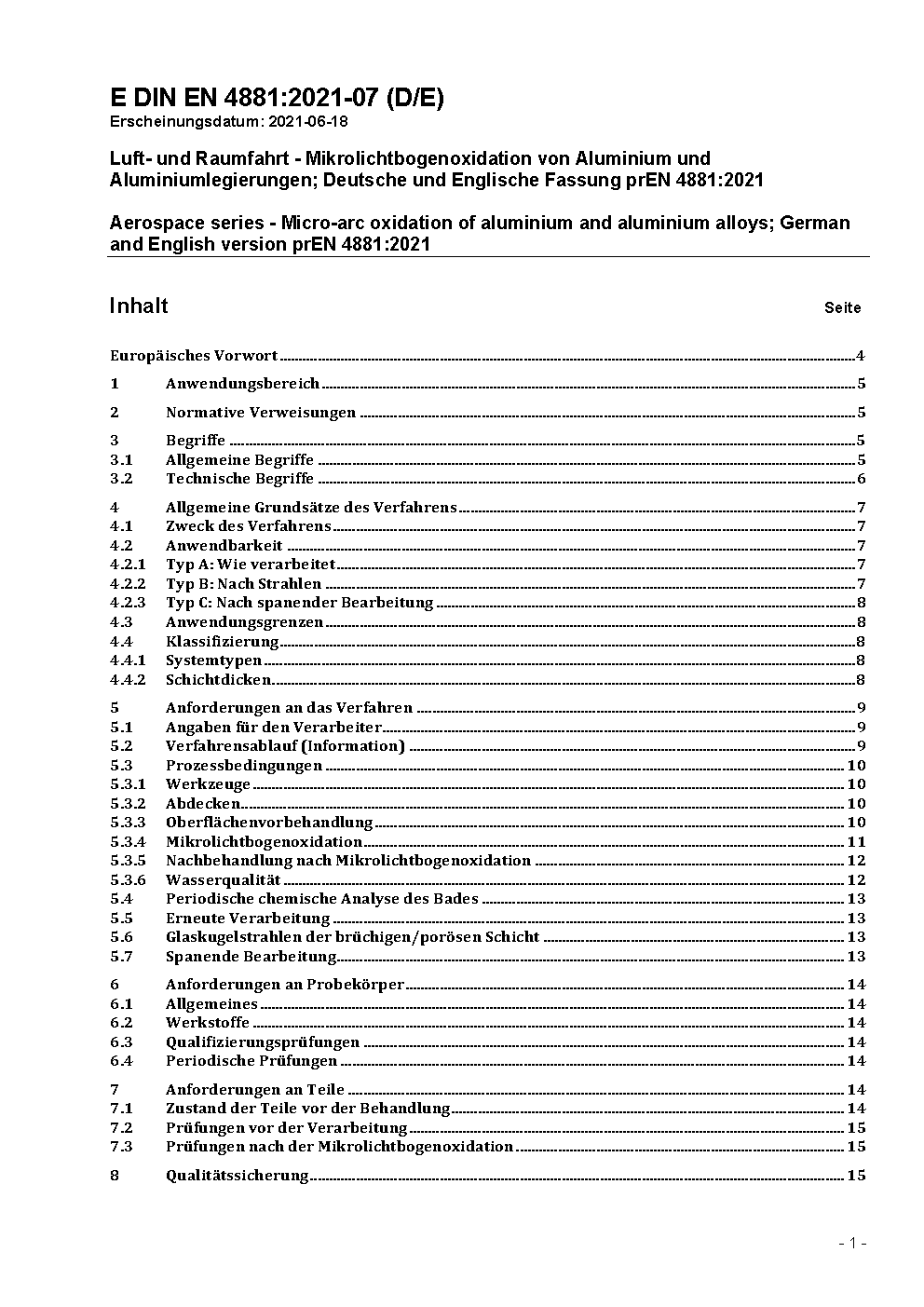 Aerospace series - Micro-arc oxidation of aluminium and aluminium alloys; German and English version EN 4881:2023