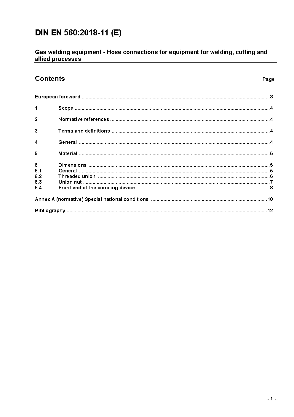 Gas welding equipment - Hose connections for equipment for welding, cutting and allied processes; German and English version prEN 560:2017