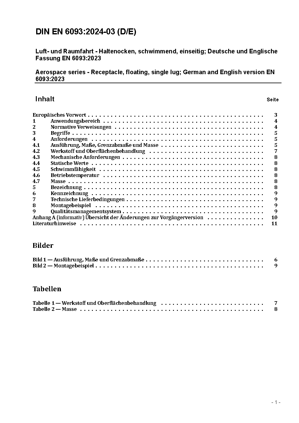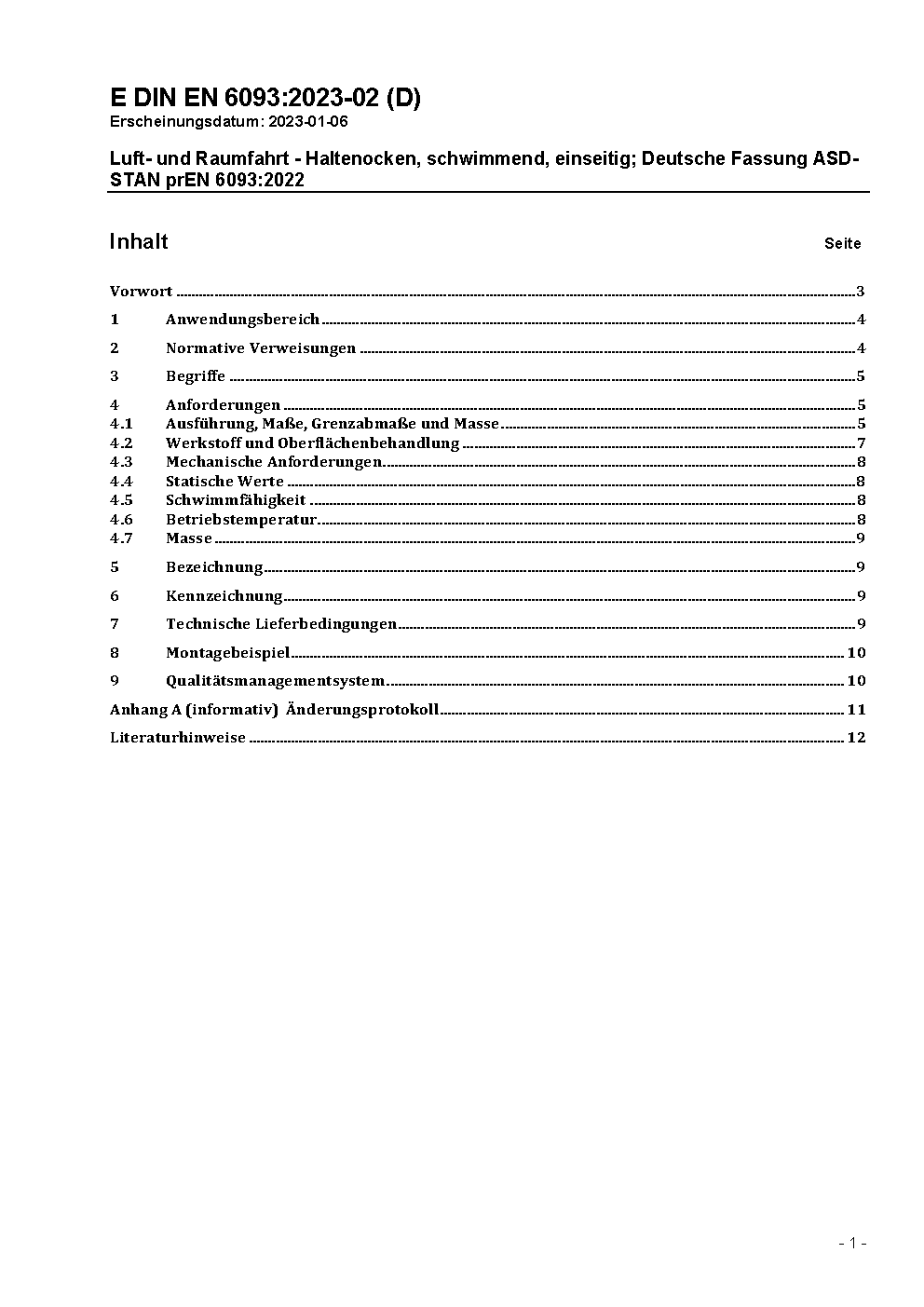 Luft- und Raumfahrt - Haltenocken, schwimmend, einseitig; Deutsche Fassung ASD-STAN prEN 6093:2022