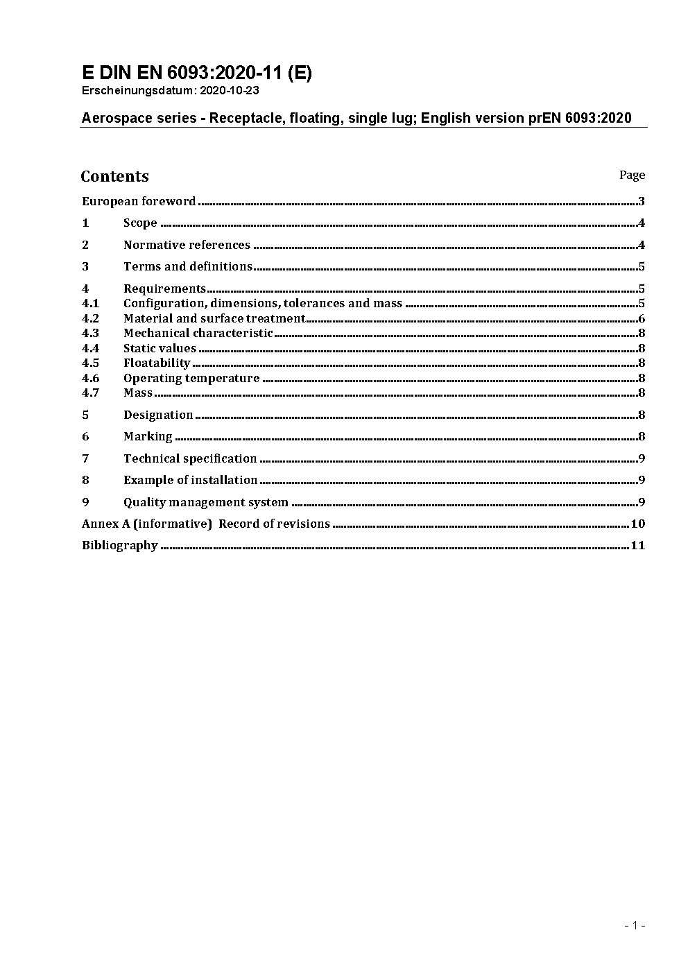 Aerospace series - Receptacle, floating, single lug; German version ASD-STAN prEN 6093:2022