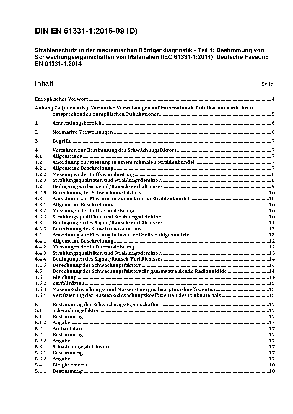 Protective devices against diagnostic medical X-radiation - Part 1: Determination of attenuation properties of materials (IEC 61331-1:1994); German version EN 61331-1:2002
