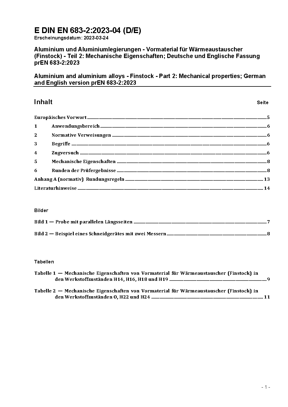 Aluminium and aluminium alloys - Finstock - Part 2: Mechanical properties; German version EN 683-2:2024 + AC:2025