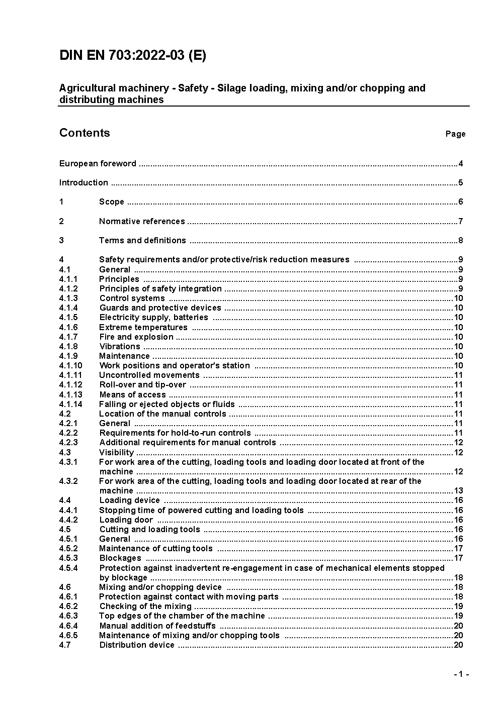 Agricultural machinery - Safety - Silage loading, mixing and/or chopping and distributing machines; German and English version prEN 703:2018