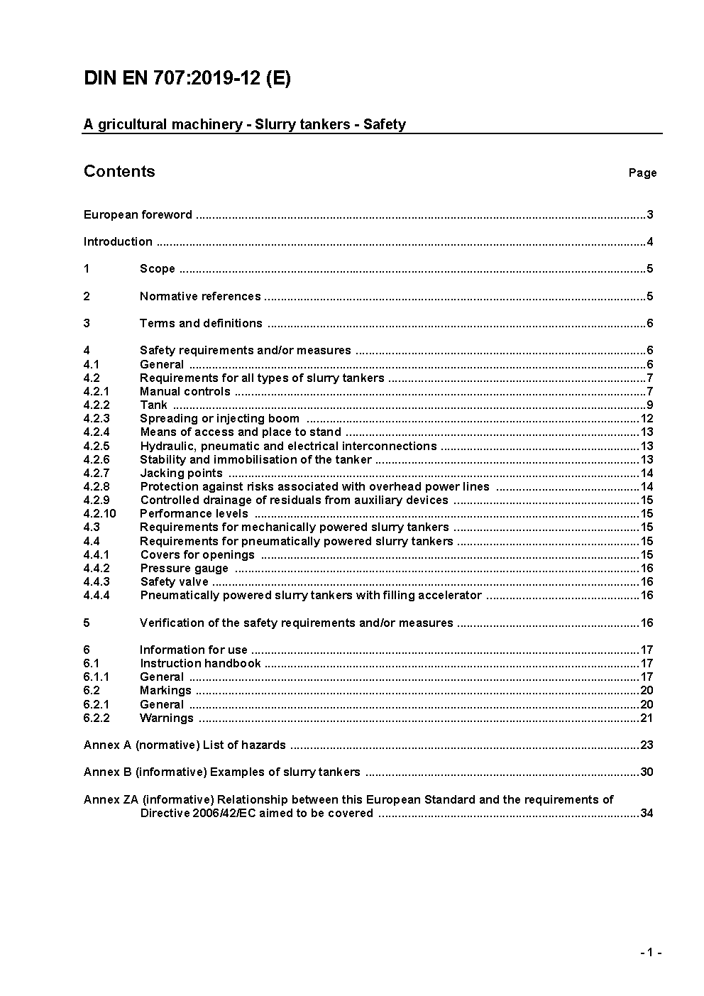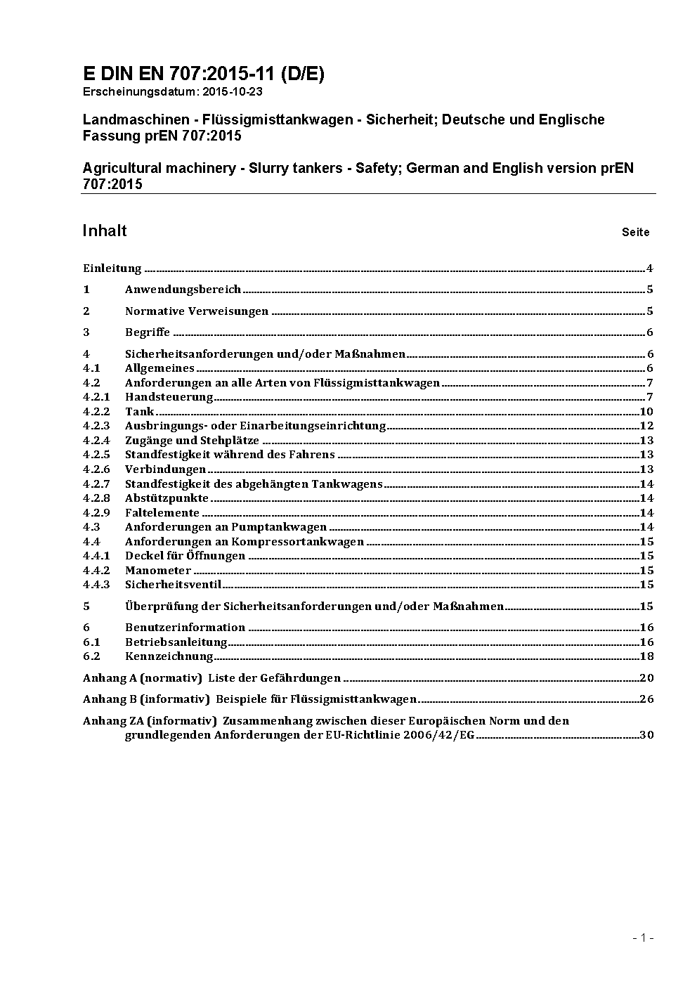 Agricultural machinery - Slurry tankers - Safety; German and English version prEN 707:2017