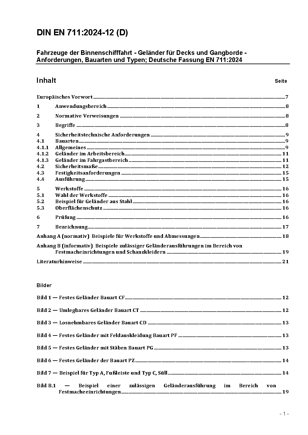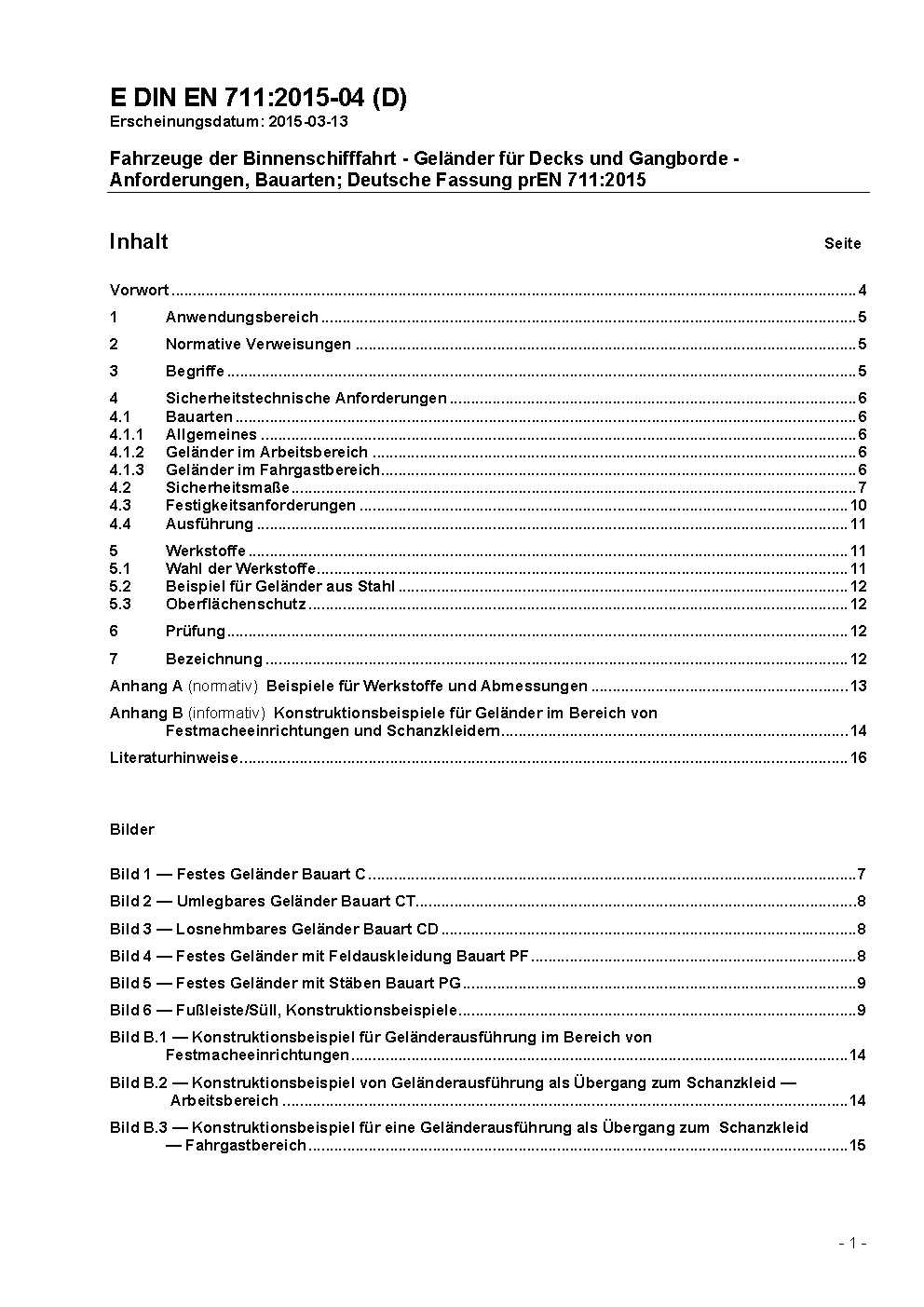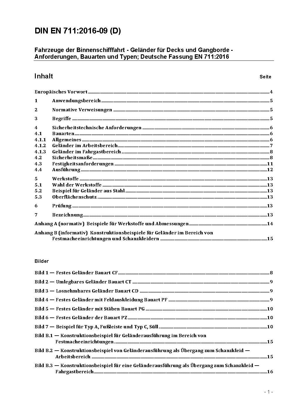 Inland navigation vessels - Railings for decks and side decks - Requirements, designs and types; German version EN 711:2016