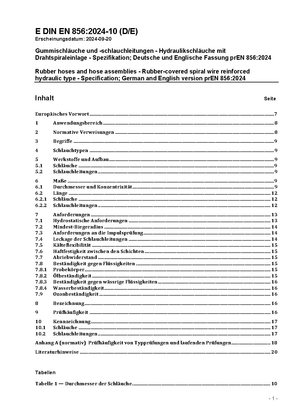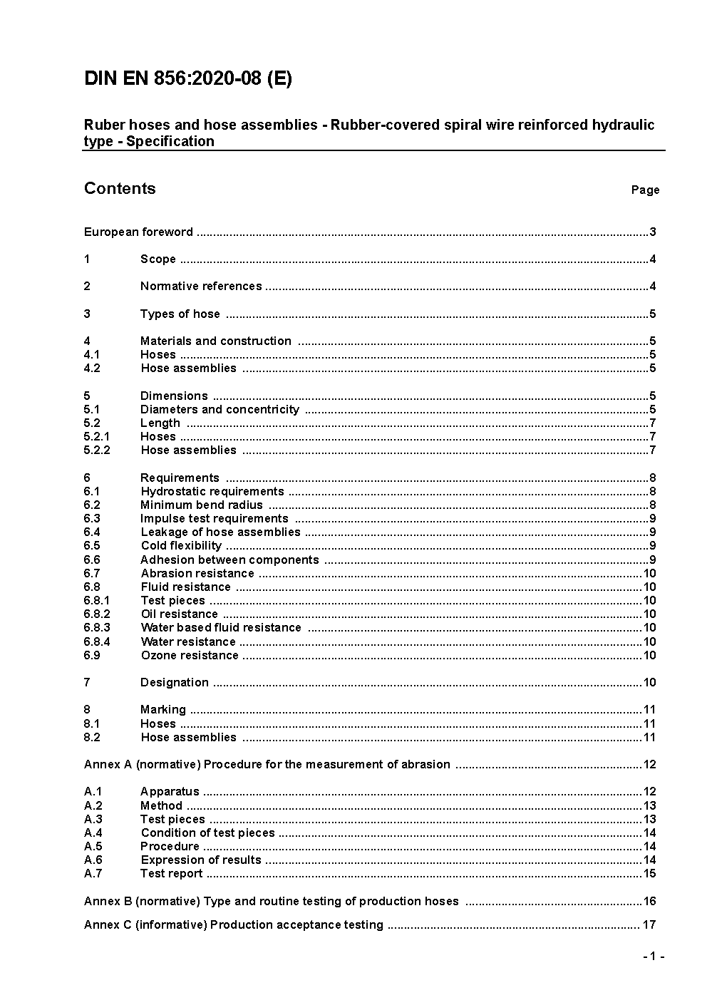 Ruber hoses and hose assemblies - Rubber-covered spiral wire reinforced hydraulic type - Specification; German version prEN 856:2013