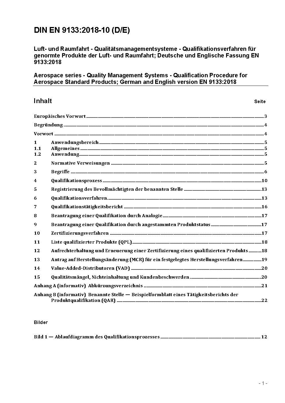 Aerospace series - Quality management systems - Qualification procedure for aerospace standard parts; German and English version EN 9133:2004