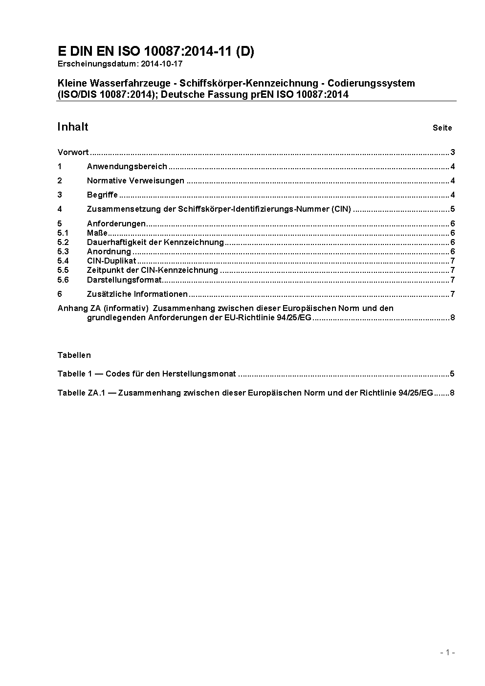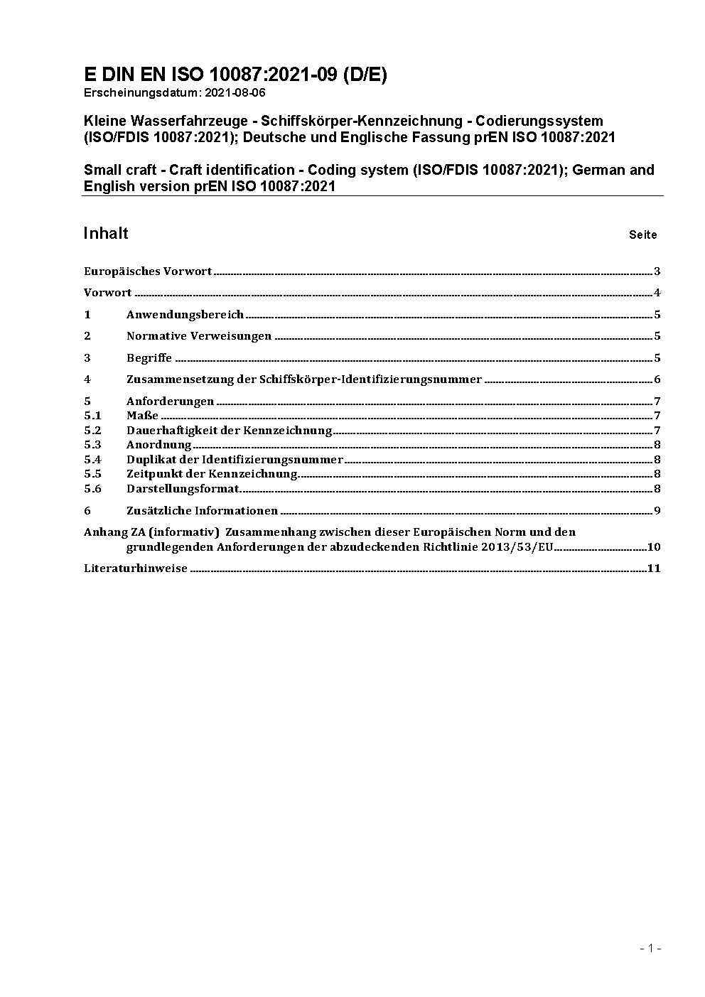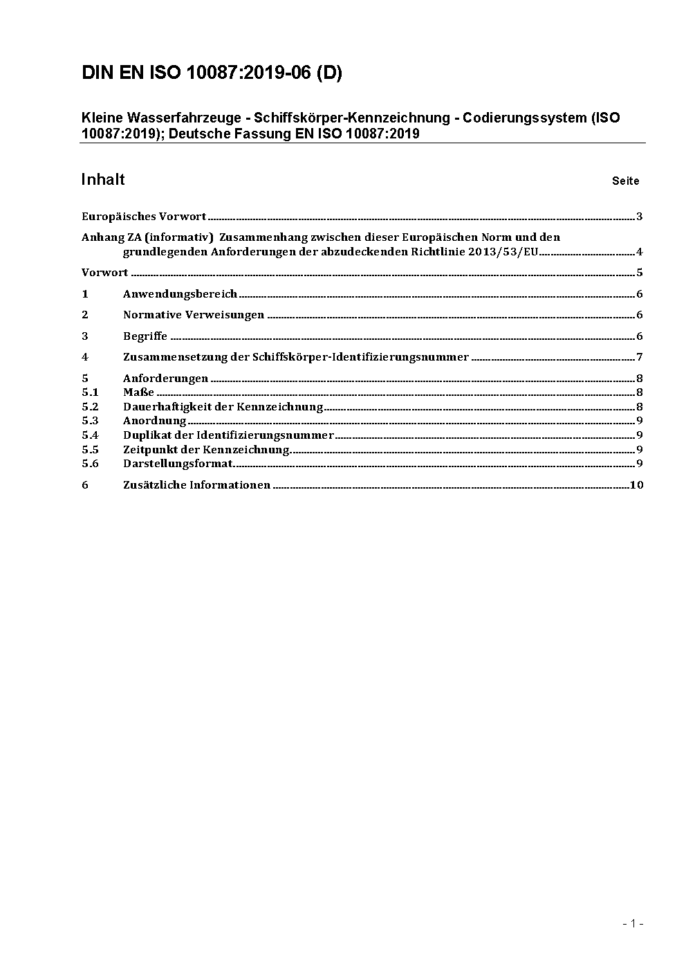 Small craft - Craft identification - Coding system (ISO 10087:2006); German version EN ISO 10087:2006