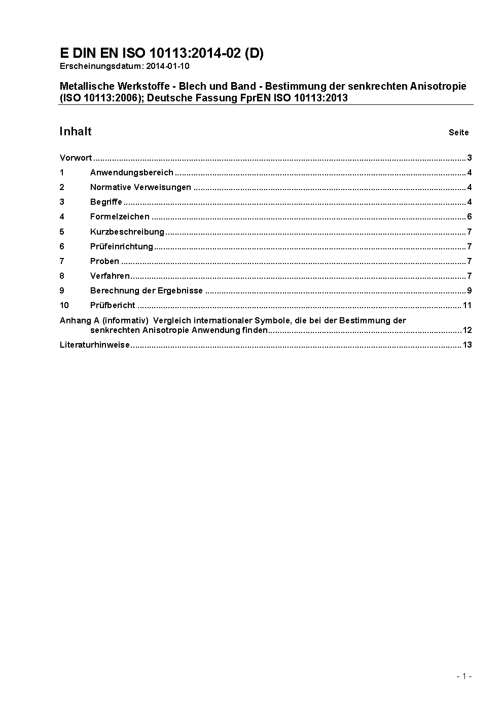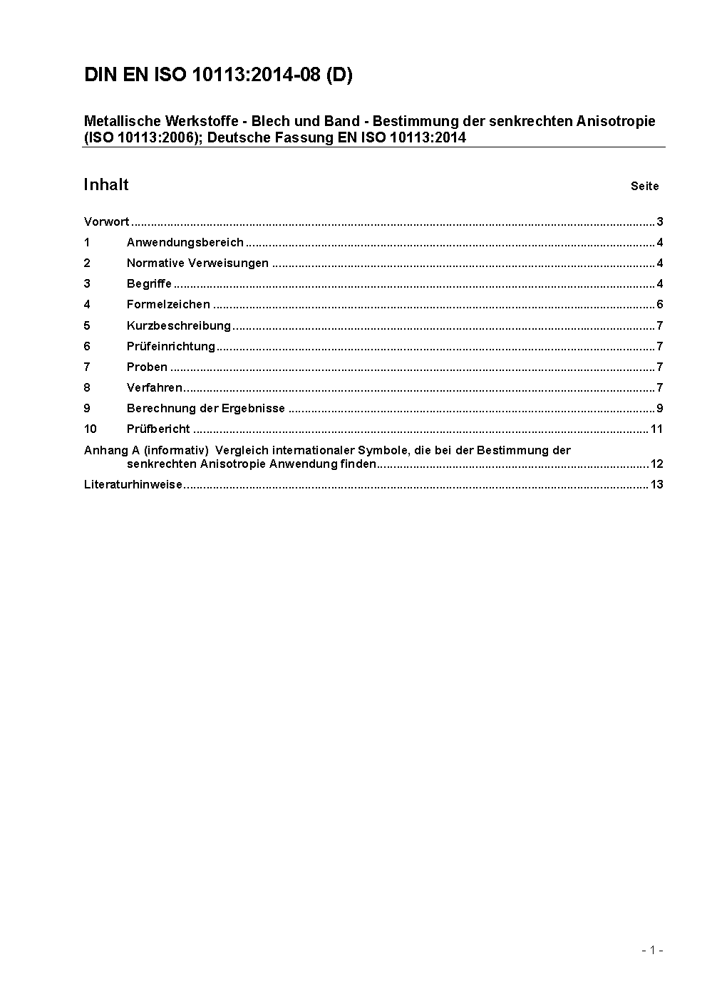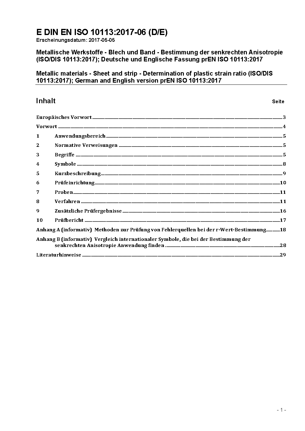 Metallic materials - Sheet and strip - Determination of plastic strain ratio (ISO 10113:2006); German version EN ISO 10113:2014