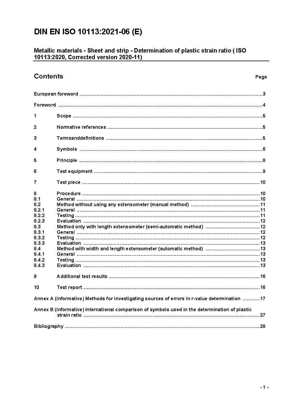 This International Standard specifies a method for determining the plastic strain ratio of flat products (sheet and strip) made of metallic materials.