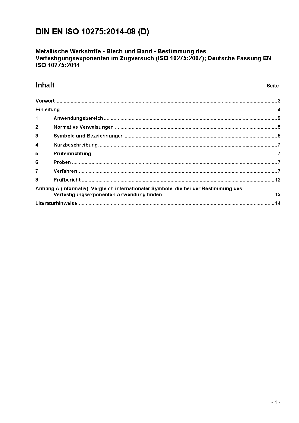 ISO 10275:2007 specifies a method for determining the tensile strain hardening exponent of flat products (sheet and strip) made of metallic materials.The method is valid only for that part of the stress-strain curve in the plastic range where the curve is continuous and monotonic.
