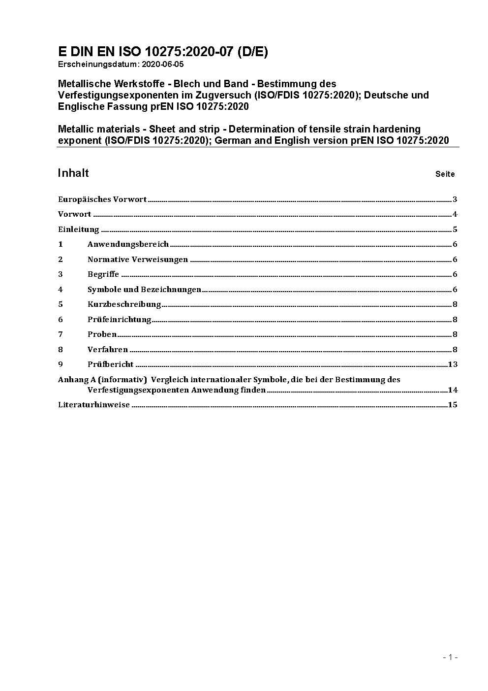 Prévu pour remplacer DIN ISO 10275 (2009-06).