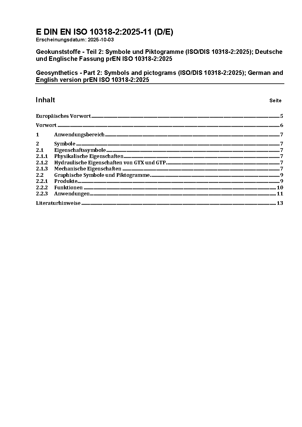 Geosynthetics - Part 2: Symbols and pictograms (ISO/DIS 10318-2:2025); German and English version prEN ISO 10318-2:2025