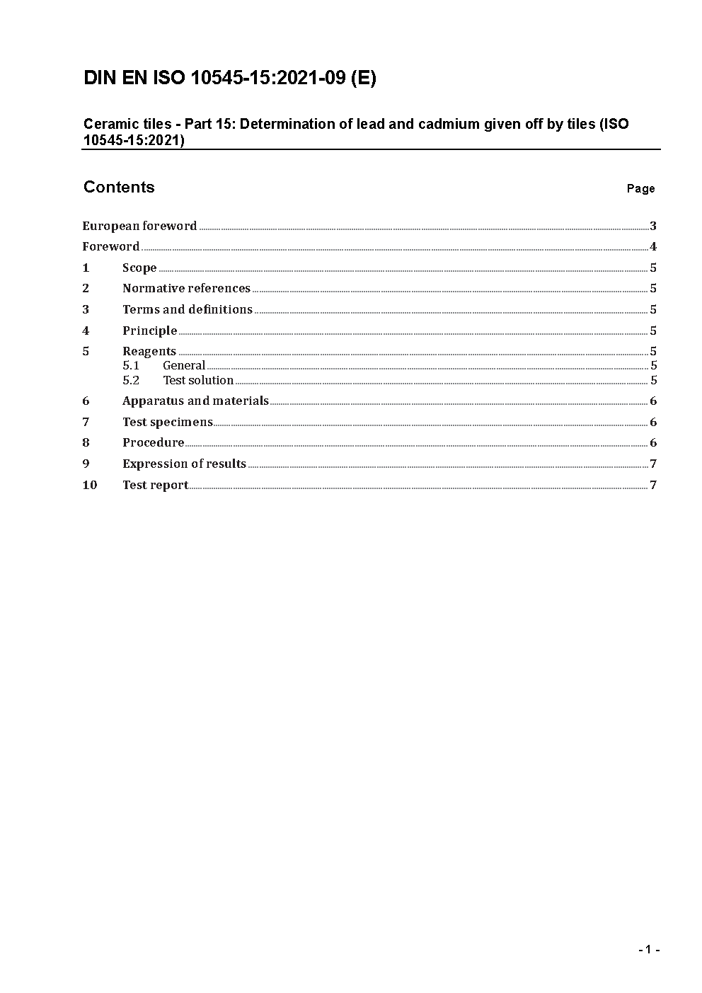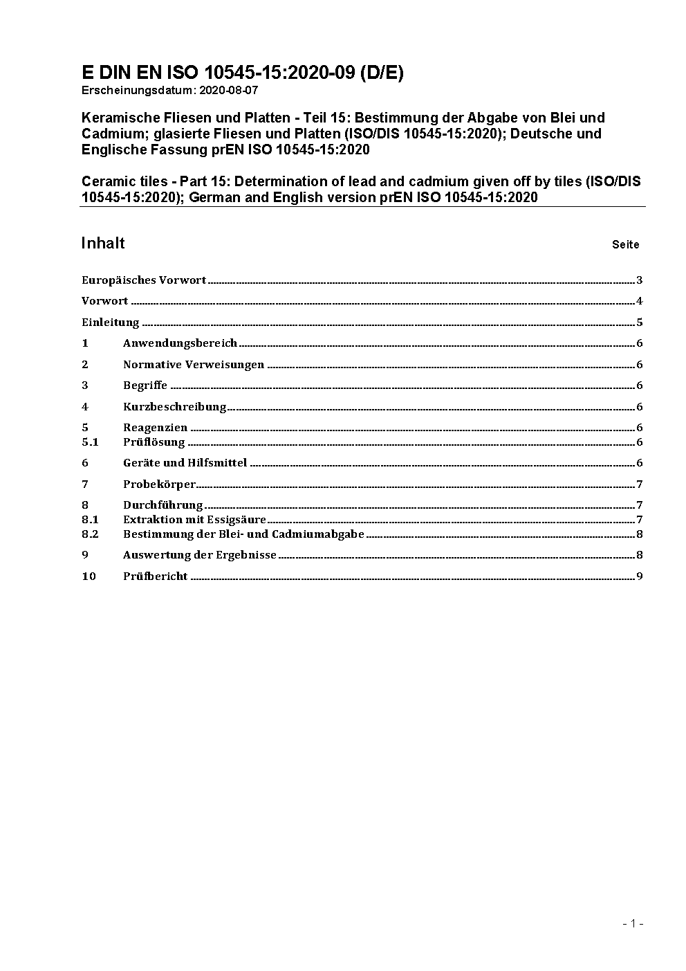 Ceramic tiles - Part 15: Determination of lead and cadmium given off by glazed tiles (ISO 10545-15:1995); German version EN ISO 10545-15:1997