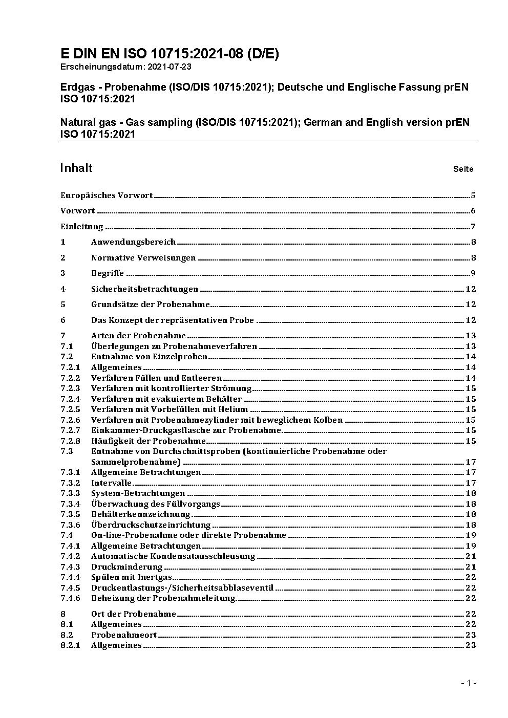 The document is to provide concise guidelines for the collection, conditioning and handling of representative samples of processed natural gas streams. It also contains guidelines for sampling strategy, probe location and the handling and design of sampling equipment.