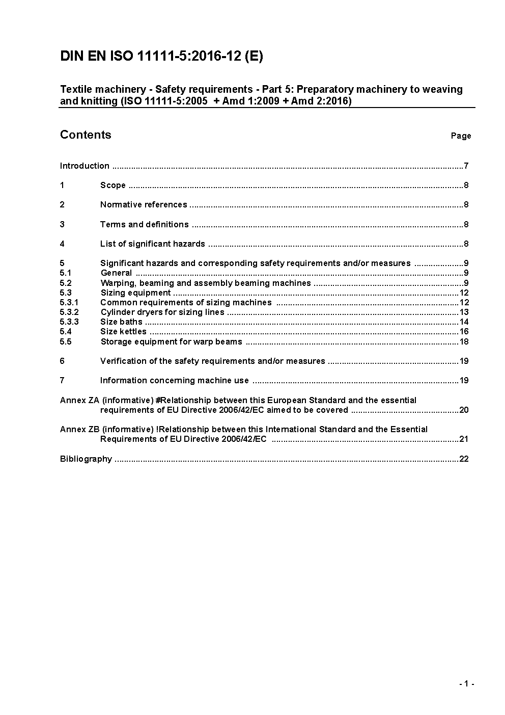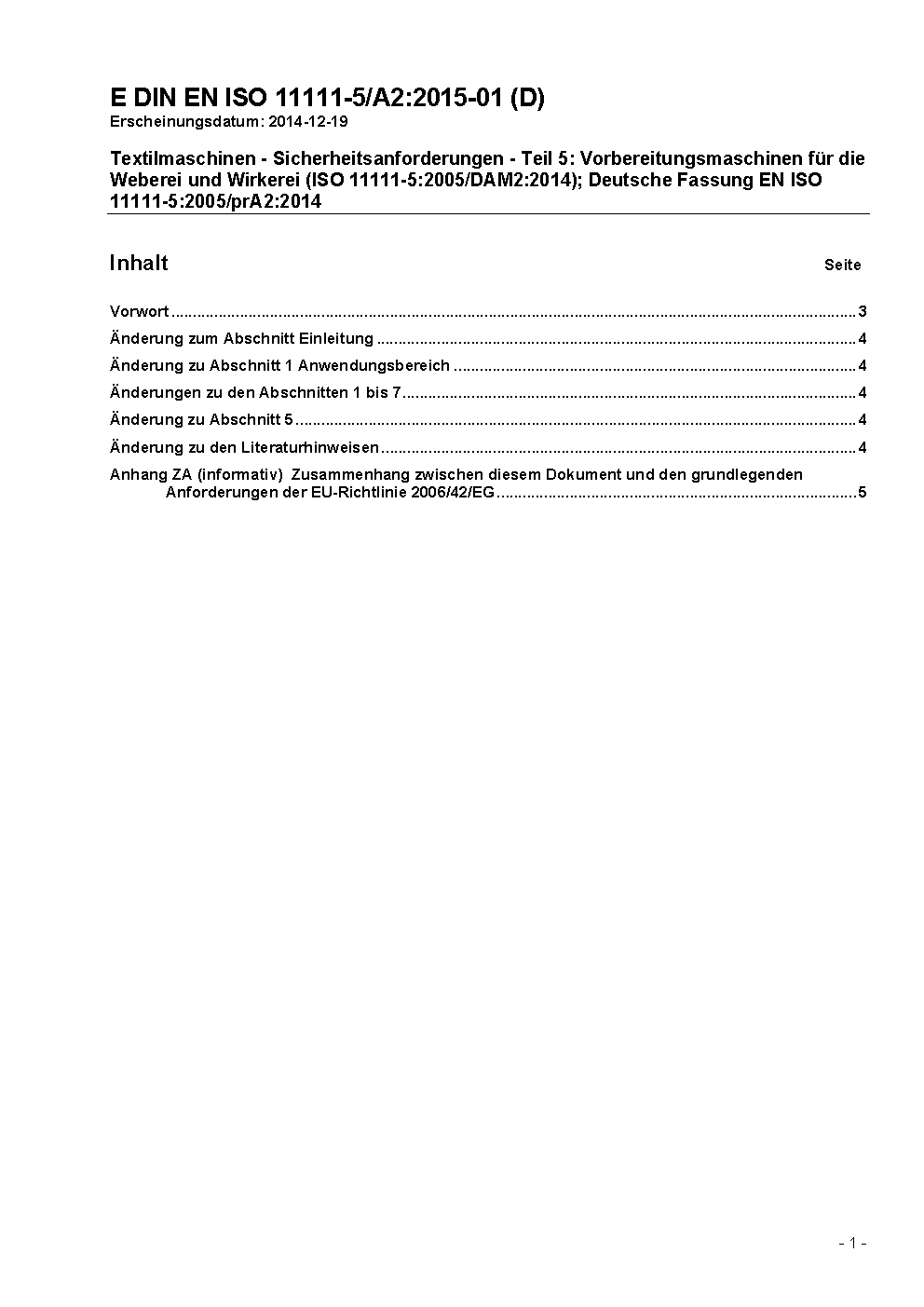 Textile machinery - Safety requirements - Part 5: Preparatory machinery to weaving and knitting (ISO 11111-5:2005/DAM2:2014); German version EN ISO 11111-5:2005/prA2:2014