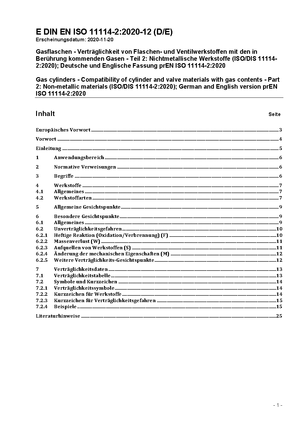 Gasflaschen - Verträglichkeit von Flaschen- und Ventilwerkstoffen mit den in Berührung kommenden Gasen - Teil 2: Nichtmetallische Werkstoffe (ISO/DIS 11114-2:2011); Deutsche Fassung prEN ISO 11114-2:2011