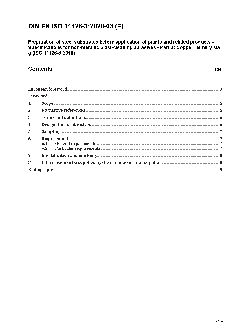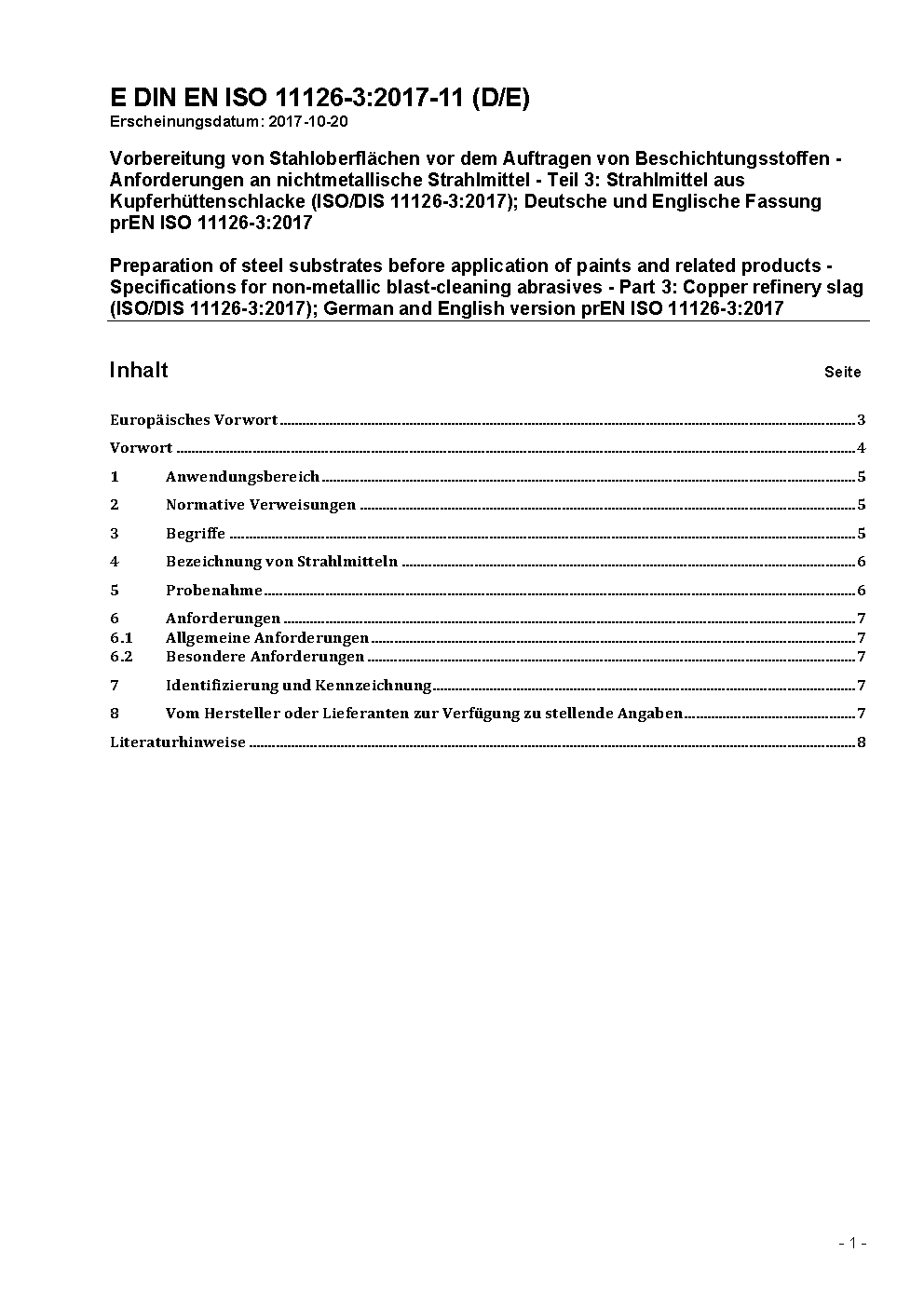 Preparation of steel substrates before application of paints and related products - Specifications for non-metallic blast-cleaning abrasives - Part 3: Copper refinery slag (ISO 11126-3:1993); German version EN ISO 11126-3:1997