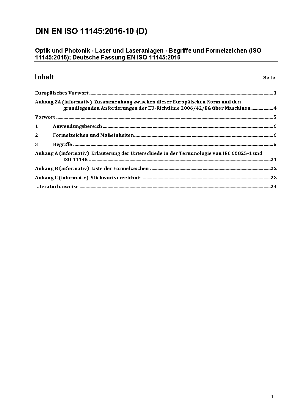 Prévu pour remplacer DIN EN ISO 11145 (2008-11).
