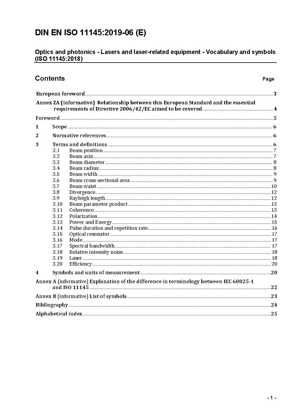 The document defines terms , symbols and units of measures for the field of laser technology in order to unify the terminology and to come to clear definitions and reproducible tests of beam parameters and laser-oriented product properties.