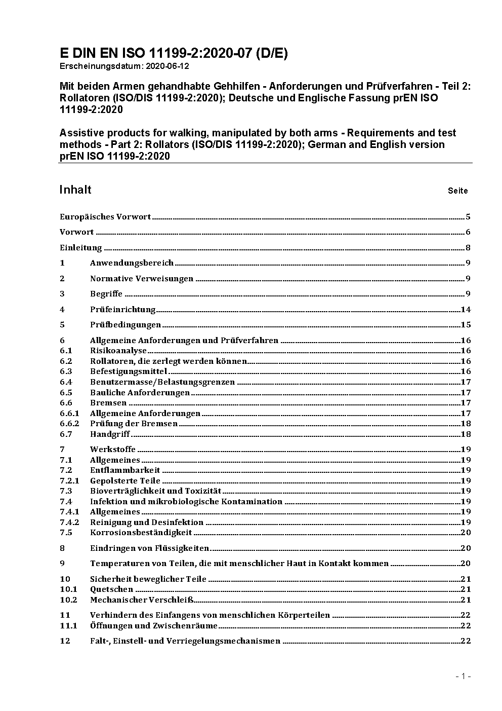 Walking aids manipulated by both arms - Requirements and test methods - Part 2: Rollators (ISO 11199-2:2005); German version EN ISO 11199-2:2005