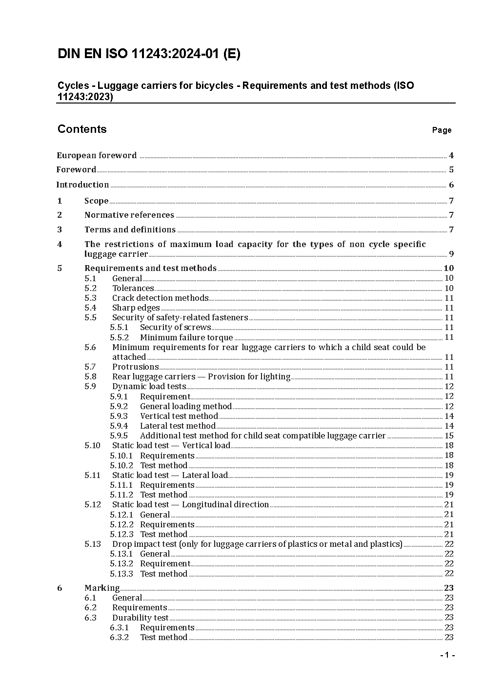 This European Standard specifies safety and performance requirements for the design and testing of luggage carriers intended for permanent mounting above or adjacent to the wheels of cycles and lays down guide lines for instructions on the use and care of such luggage carriers. This European Standard does not apply to removable luggage (for example handlebar bags or baskets that are not permanently attached).