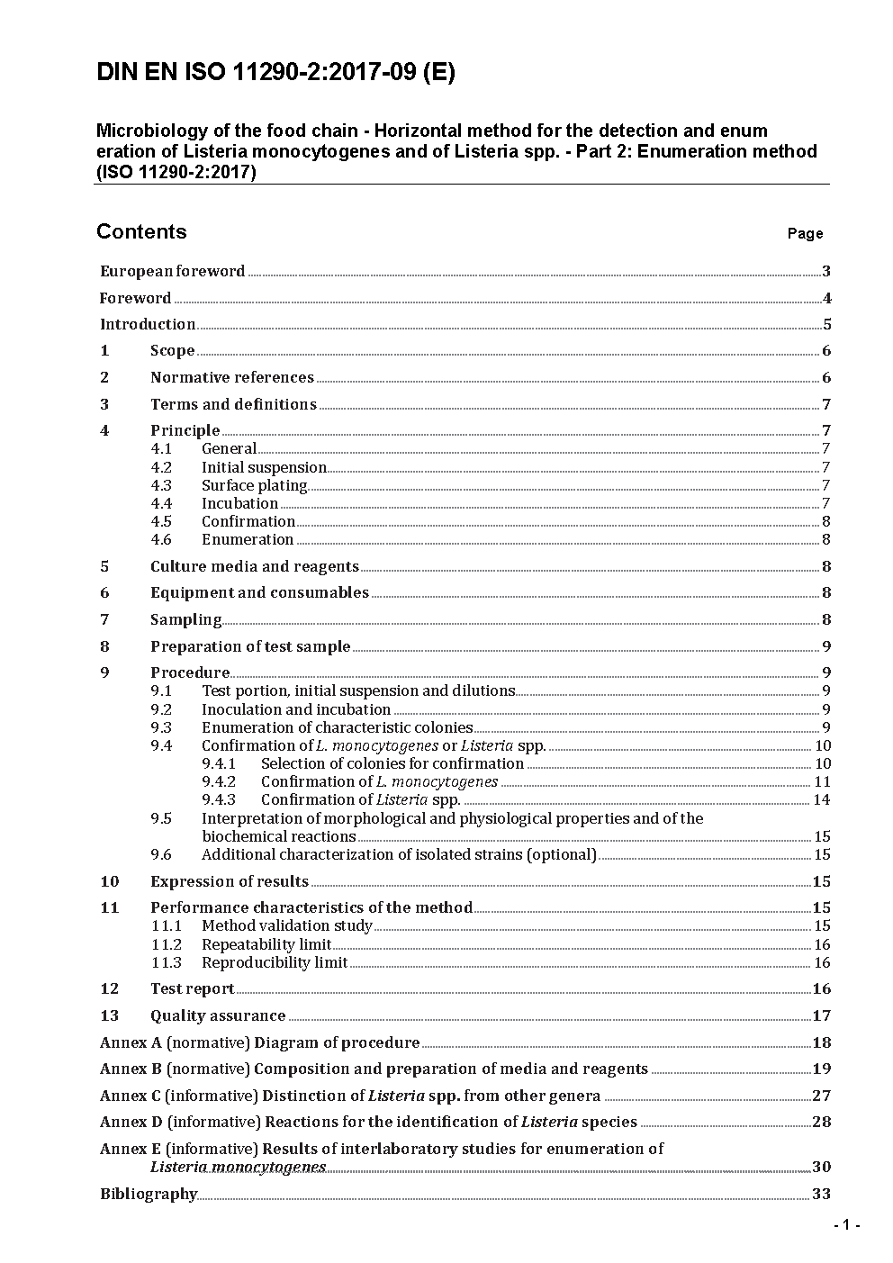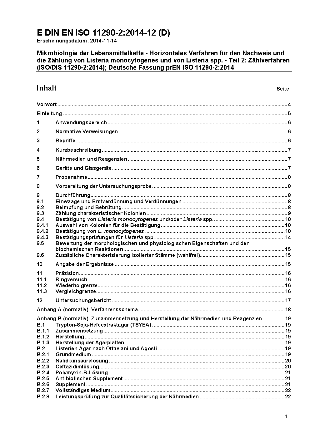 This standard is a horizontal microbiological method for the enumeration of Listeria monocytogenes. It contains a modification of the isolation medium.