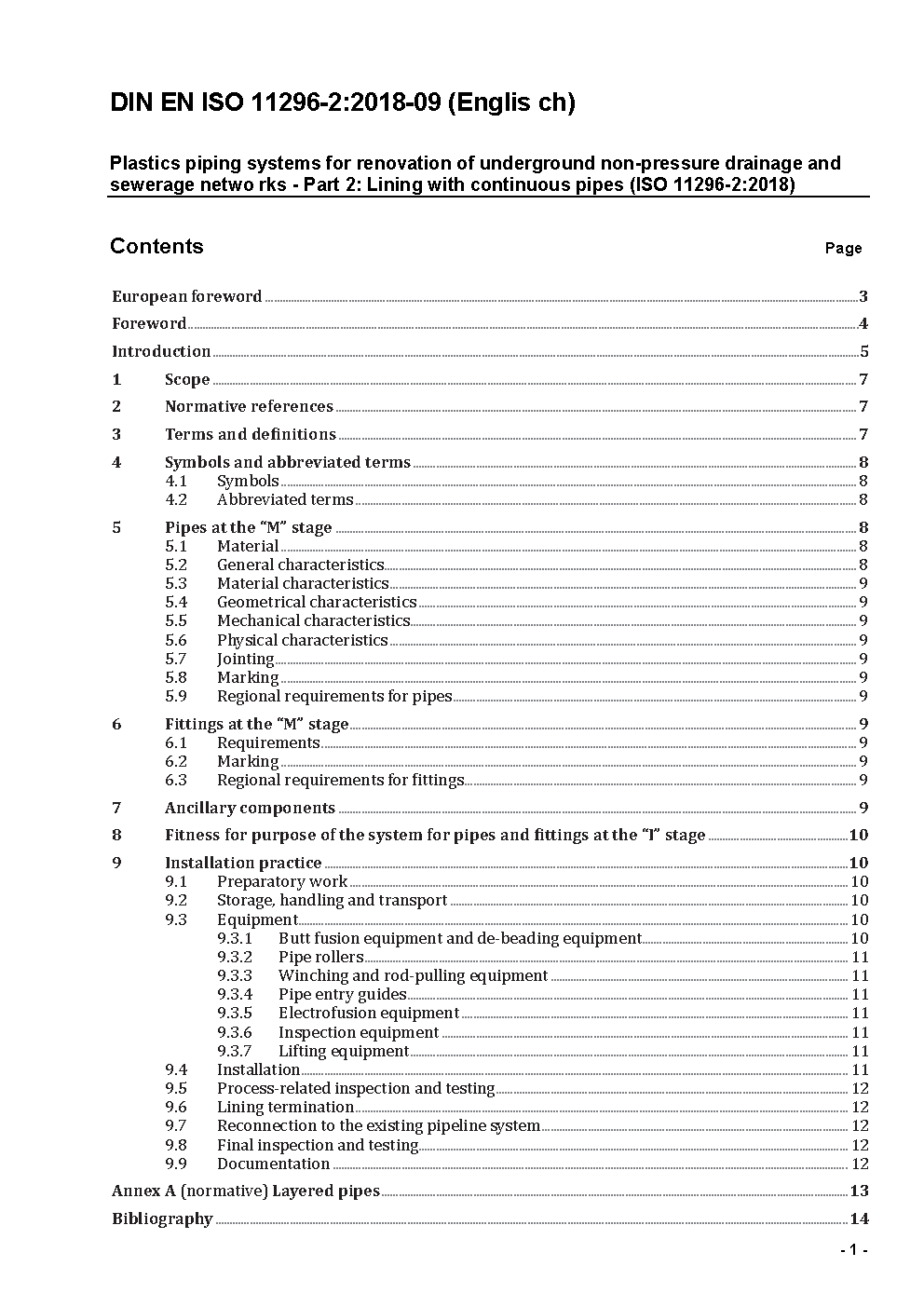 This Part 2 of EN ISO 11296, read in conjunction with Part 1, specifies requirements and test methods for pipes and fittings which are part of plastics piping systems installed as continuous pipes in the renovation of non-pressure drainage and sewerage networks. It covers: - homogeneous-wall (HW) pipes made of polyethylene (PE) or polypropylene (PP); - structured-wall (SW) pipes of the corrugated double-wall type of construction, whose structural layer(s) is (are) made of PE or PP; - jointing of pipe lengths by means of butt fusion (HW) or electrofusion (SW); - fabricated and injection-moulded fittings made of PE, PP and poly(vinyl chloride) (PVC-U).