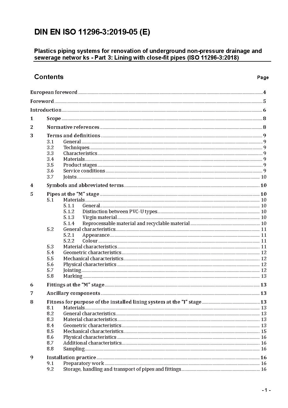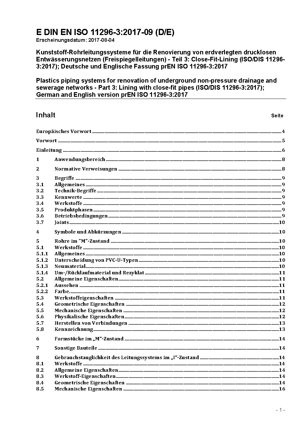 Plastics piping systems for renovation of underground non-pressure drainage and sewerage networks - Part 3: Lining with close-fit pipes (ISO/DIS 11296-3:2017); German and English version prEN ISO 11296-3:2017