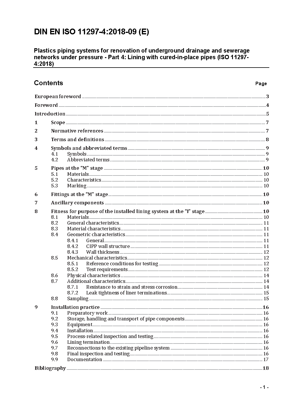 Plastics piping systems for renovation of underground drainage and sewerage networks under pressure - Part 4: Lining with cured-in-place pipes (ISO 11297-4:2018); German version EN ISO 11297-4:2018