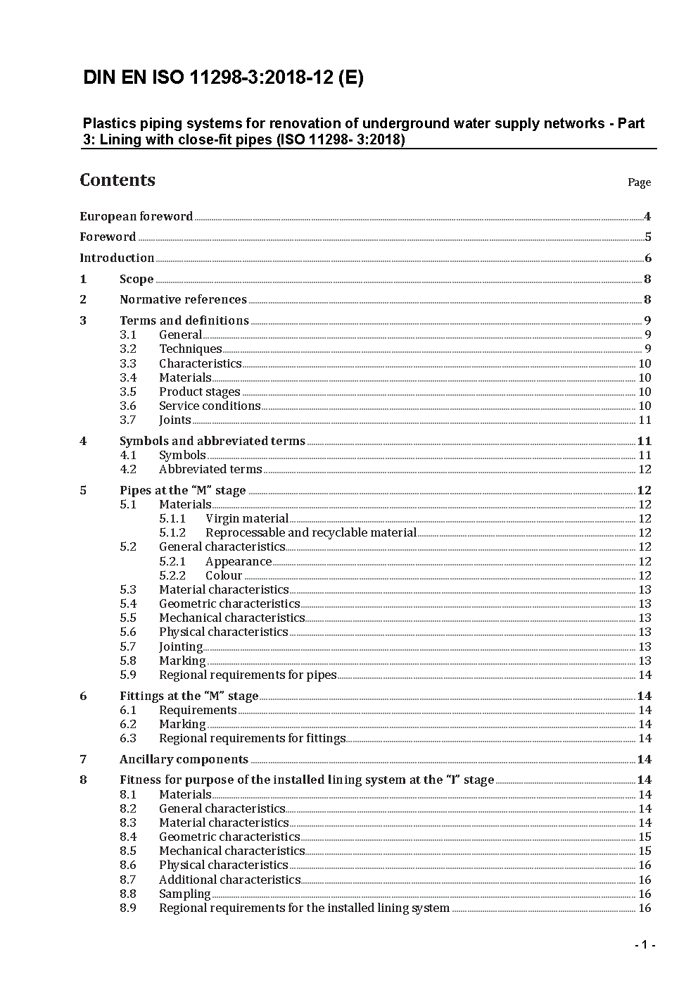 Plastics piping systems for renovation of underground water supply networks - Part 3: Lining with close-fit pipes (ISO 11298-3:2010); German version EN ISO 11298-3:2011