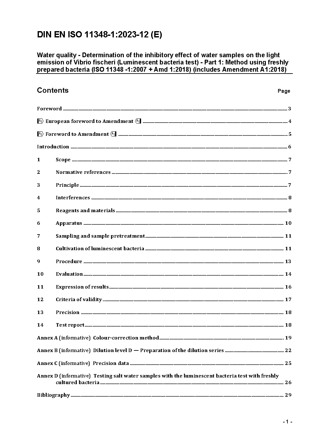 Water quality - Determination of the inhibitory effect of water samples on the light emission of Vibrio fischeri (Luminescent bacteria test) - Part 1: Method using freshly prepared bacteria (ISO 11348-1:2007); German version EN ISO 11348-1:2008