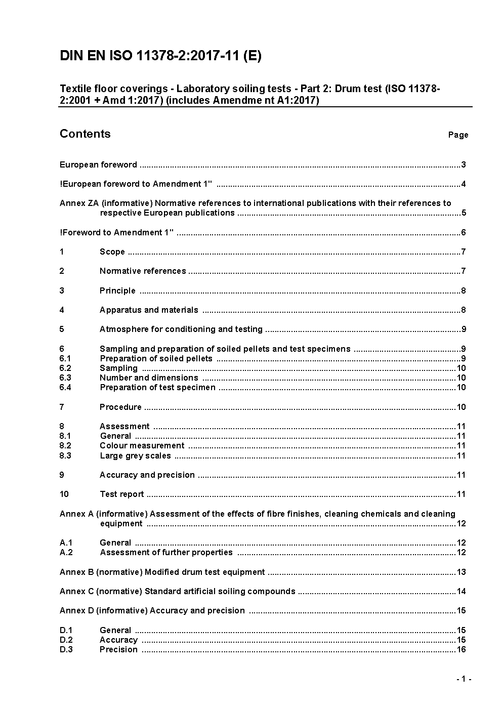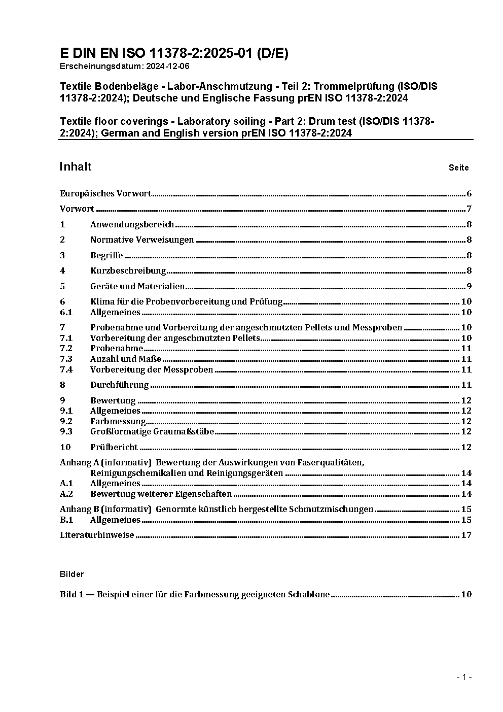 Textile Bodenbeläge - Laboratoriums-Anschmutzungsprüfungen - Teil 2: Trommelprüfung (ISO/DIS 11378-2:1999); Deutsche Fassung prEN ISO 11378-2:1999