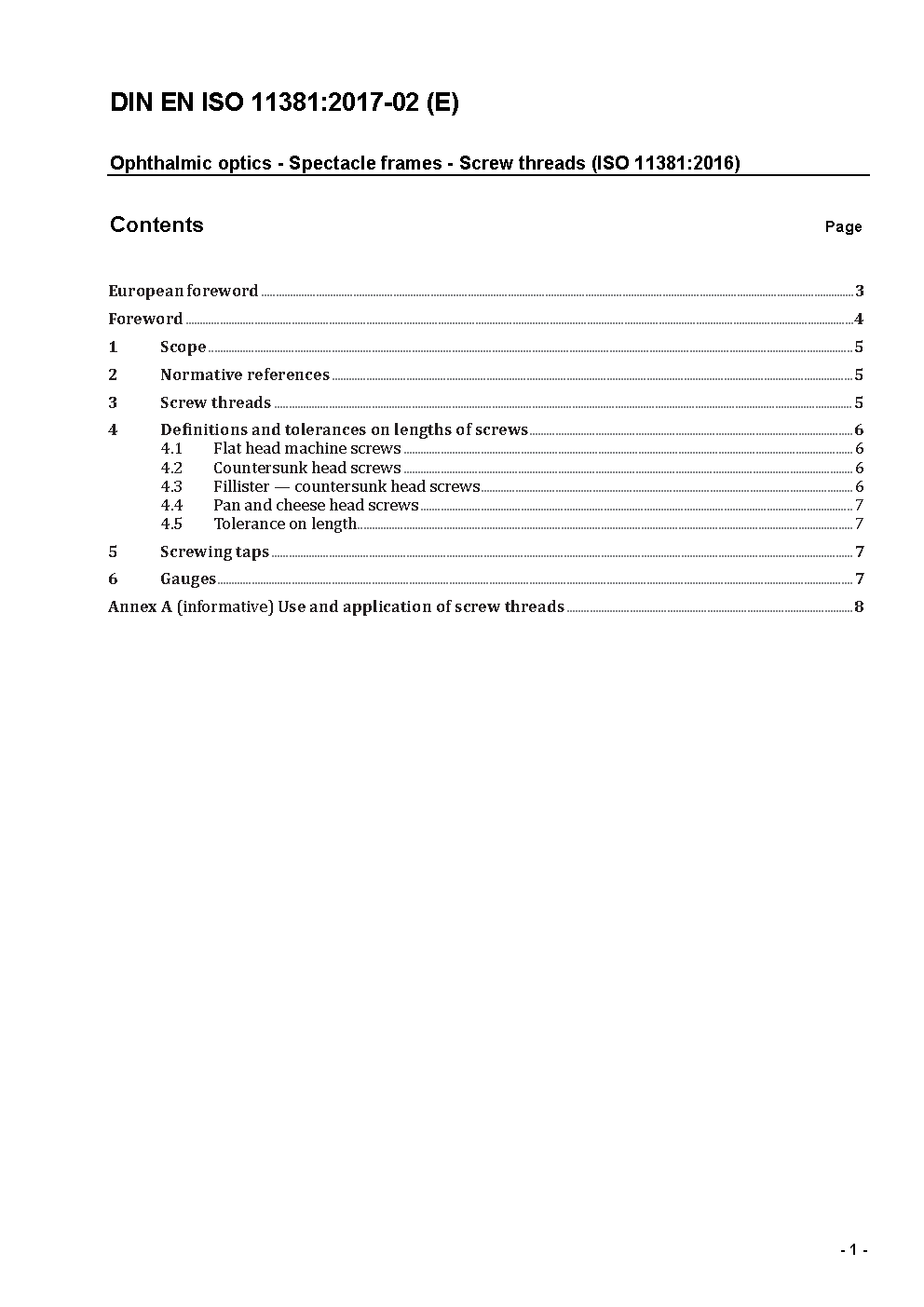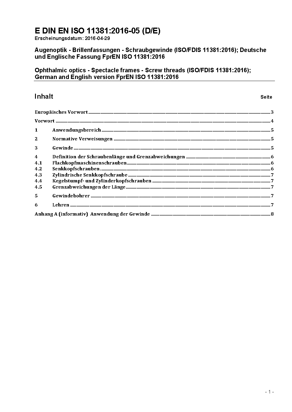 Optics and optical instruments - Ophthalmic optics - Screw threads (ISO 11381:1994); German version EN ISO 11381:1996