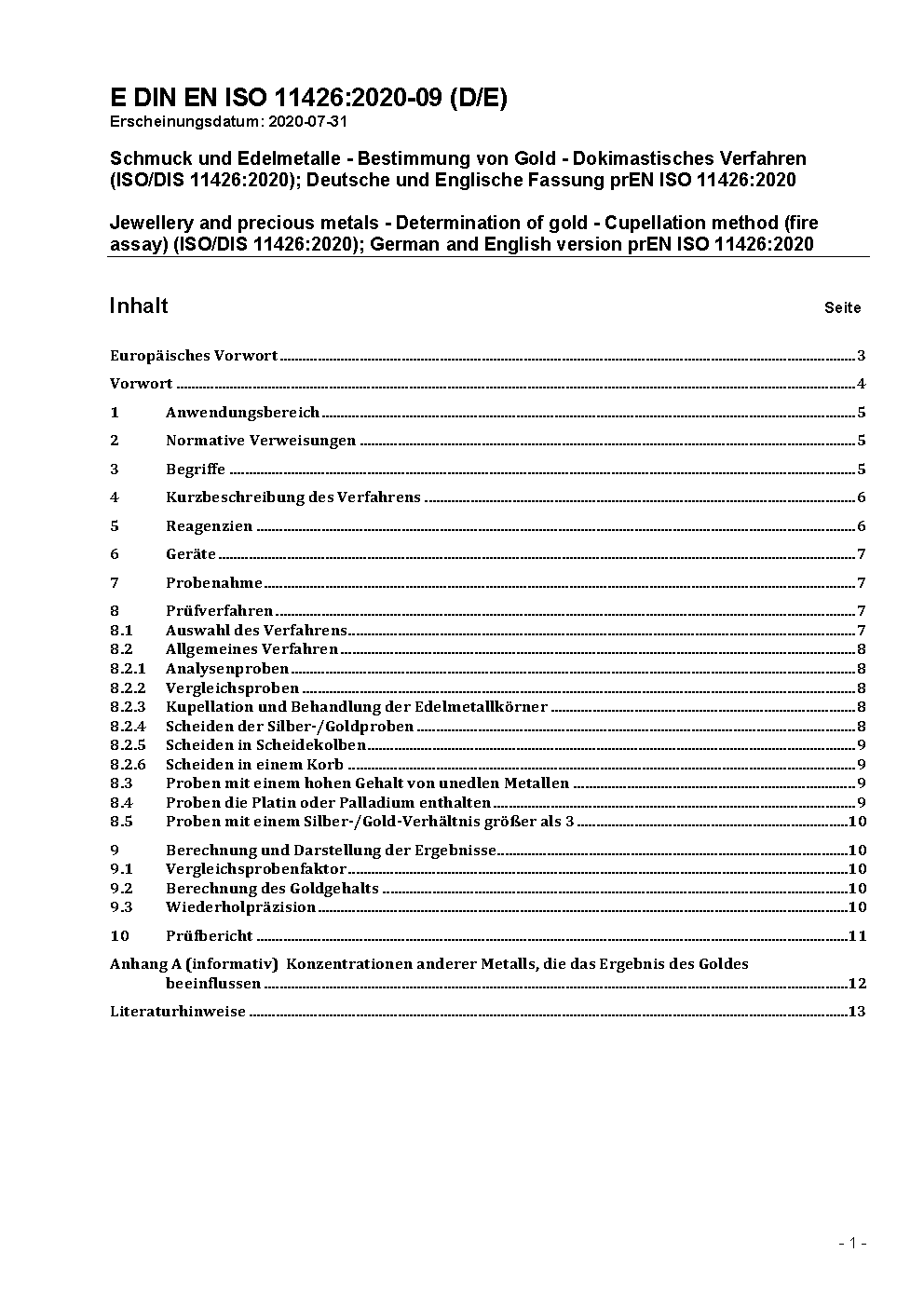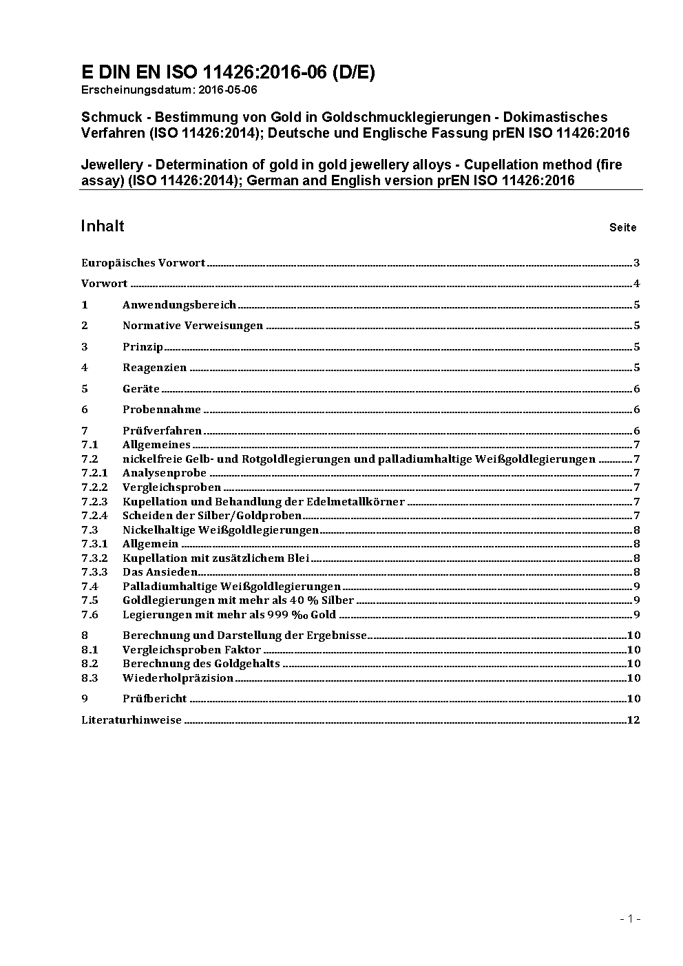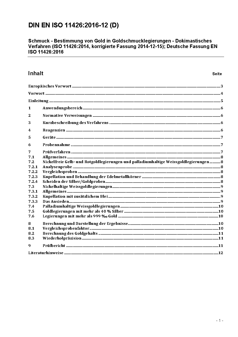 Schmuck und Edelmetalle - Bestimmung von Gold - Dokimastisches Verfahren (ISO 11426:2021); Deutsche Fassung EN ISO 11426:2021