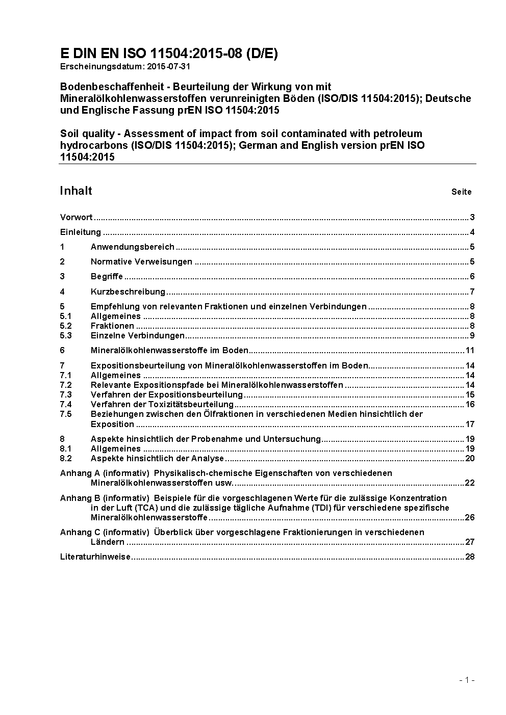 Soil quality - Assessment of impact from soil contaminated with petroleum hydrocarbons (ISO 11504:2017); German version EN ISO 11504:2017