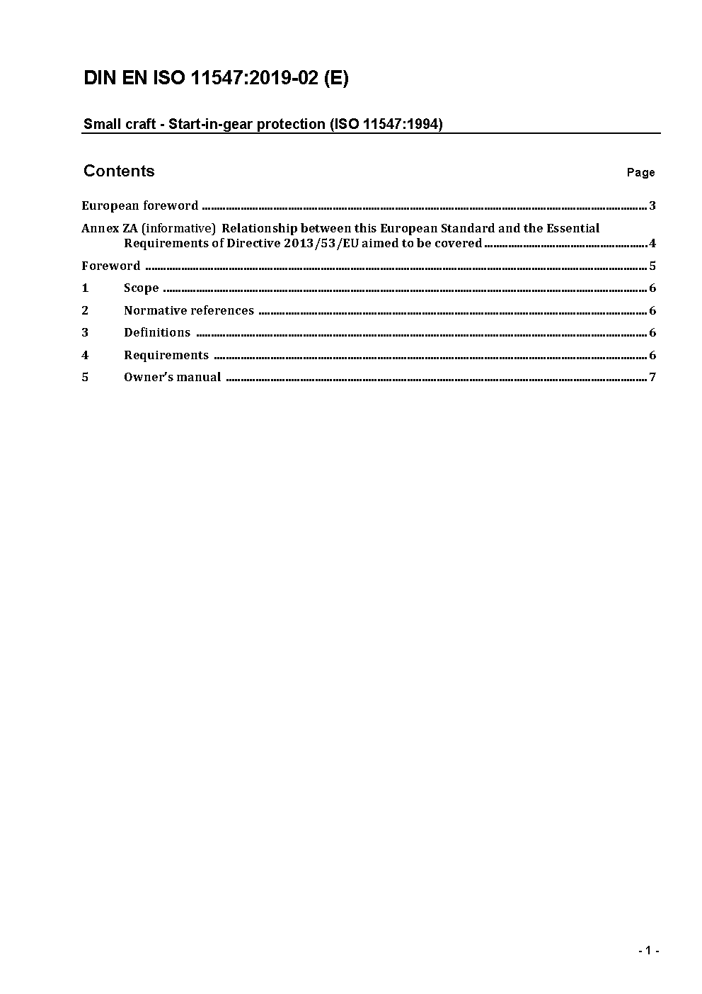 Small craft - Start-in-gear protection (ISO 11547:1994); German version EN ISO 11547:1995