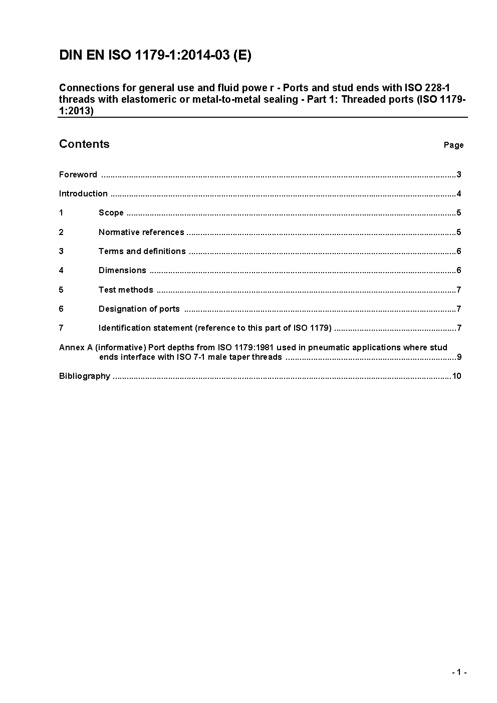 This part of ISO 1179 specifies dimensions for ports with ISO 228-1 threads for use with non-adjustable stud ends shown in ISO 1179 2, ISO 1179 3 and ISO 1179 4 and with adjustable stud ends shown in ISO 1179 3. Users of this part of ISO 1179 should ensure that there is sufficient material around the port to maintain the pressure.