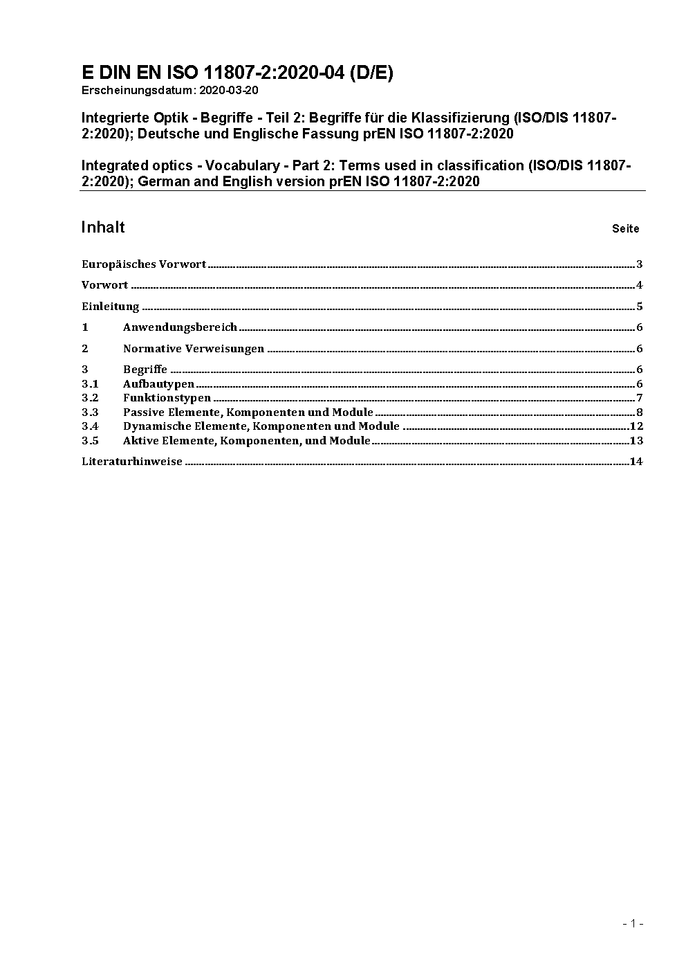 Integrated optics - Vocabulary - Part 2: Terms used in classification (ISO 11807-2:2001); German version EN ISO 11807-2:2005