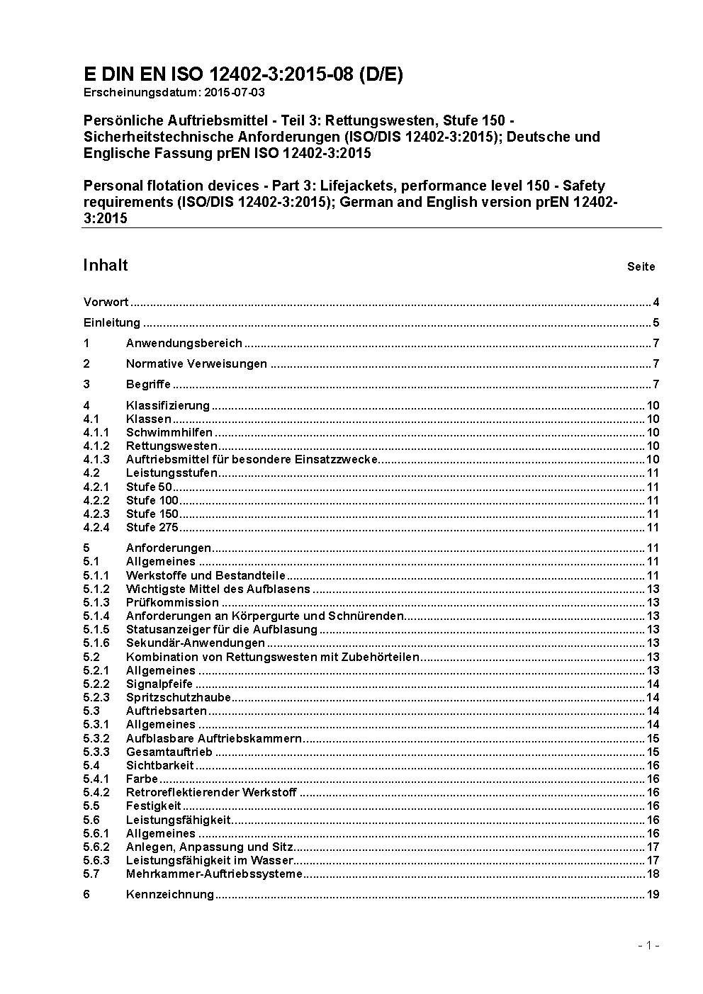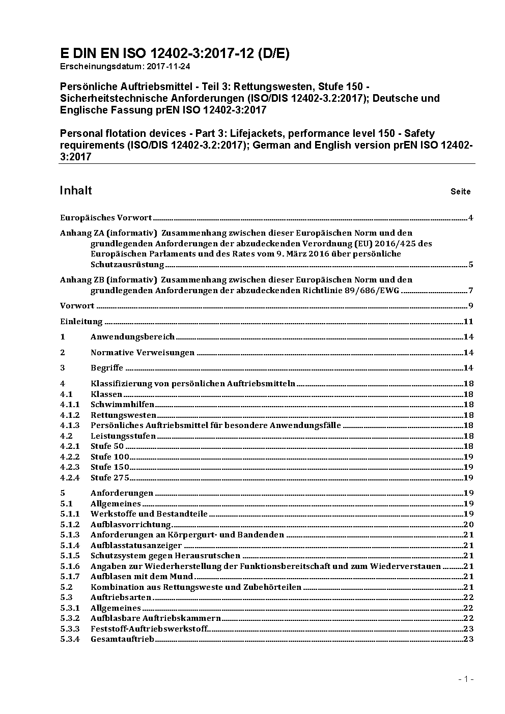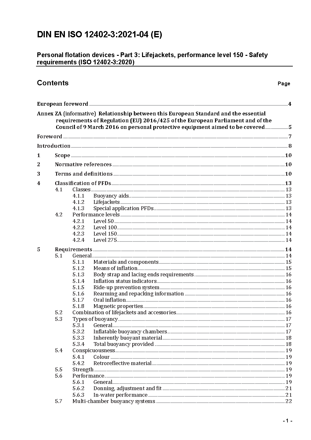 This part of ISO 12402 specifies the safety requirements for lifejackets, performabce level 150, for average adults for general application or with foul weather clothing.
