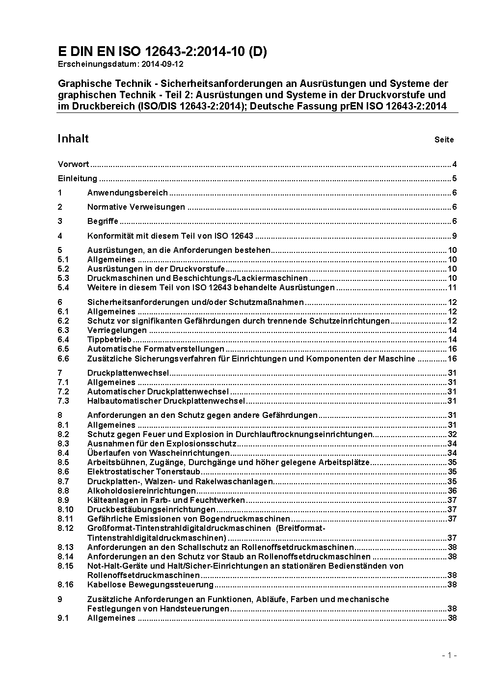 Graphische Technik - Sicherheitsanforderungen an Ausrüstungen und Systeme der graphischen Technik - Teil 2: Ausrüstungen und Systeme in der Druckvorstufe und im Druckbereich (ISO 12643-2:2023); Deutsche Fassung EN ISO 12643-2:2023