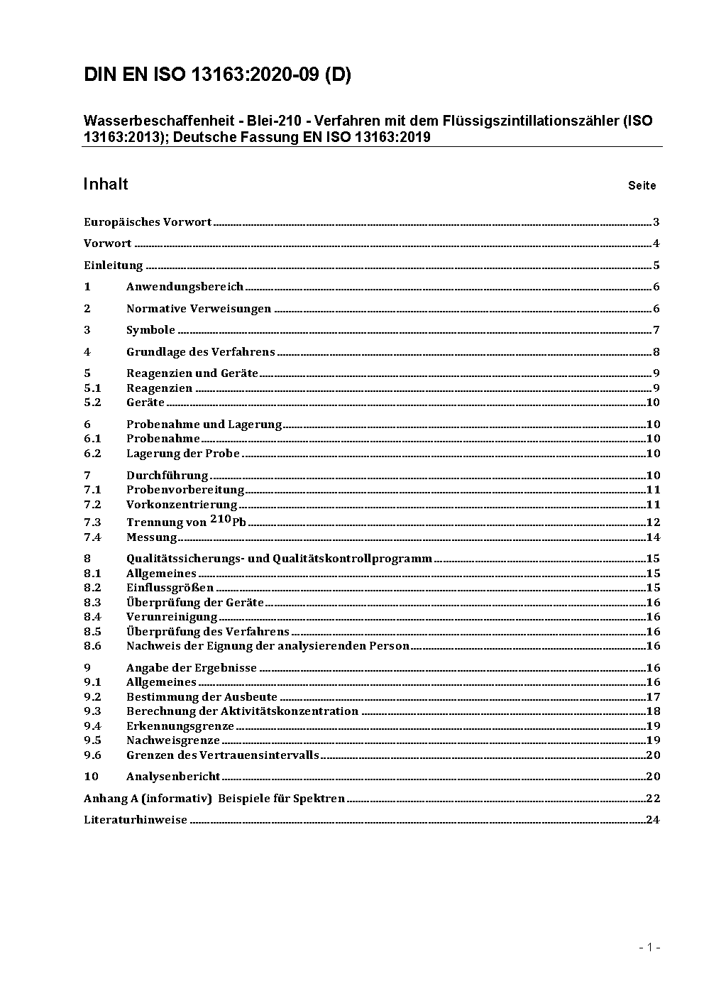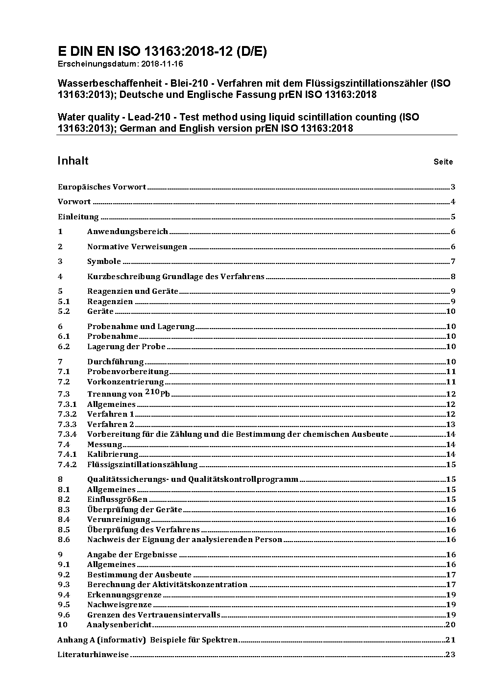 Water quality - Lead-210 - Test method using liquid scintillation counting (ISO 13163:2013); German and English version prEN ISO 13163:2018