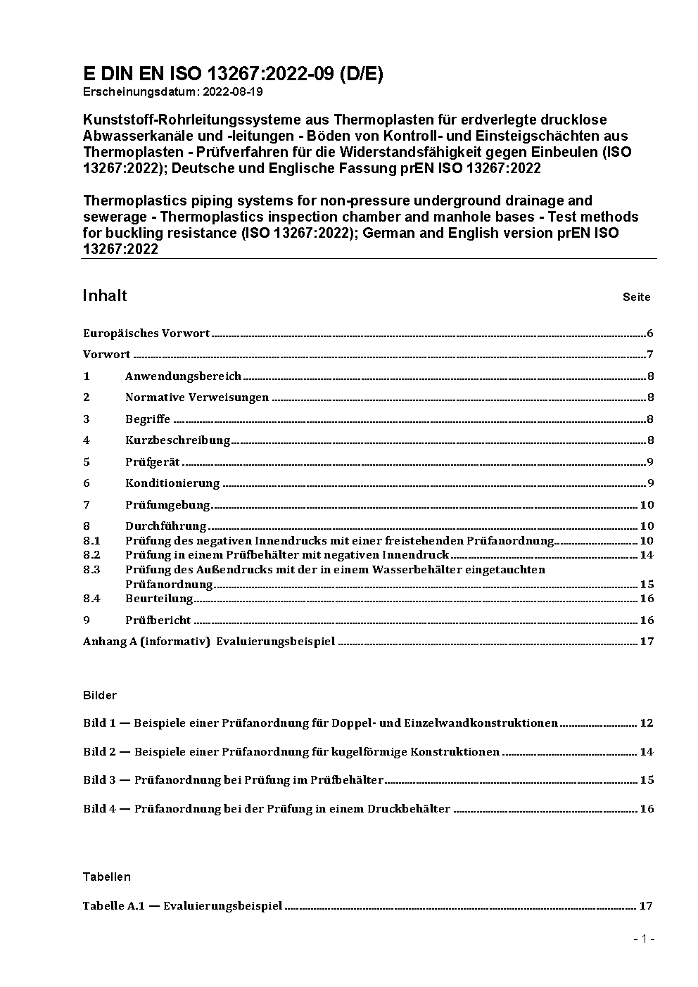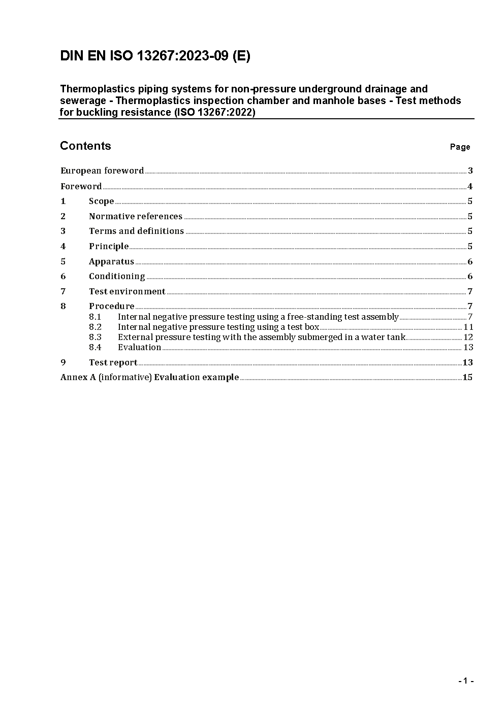 Thermoplastics piping systems for non-pressure underground drainage and sewerage - Thermoplastics inspection chamber and manhole bases - Test methods for buckling resistance (ISO 13267:2022); German version EN ISO 13267:2023