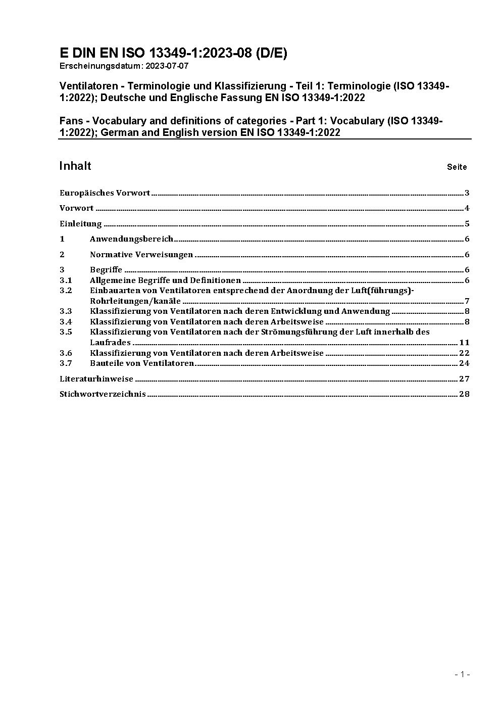 Ventilatoren - Terminologie und Klassifizierung - Teil 1: Terminologie (ISO 13349-1:2022); Deutsche und Englische Fassung EN ISO 13349-1:2022