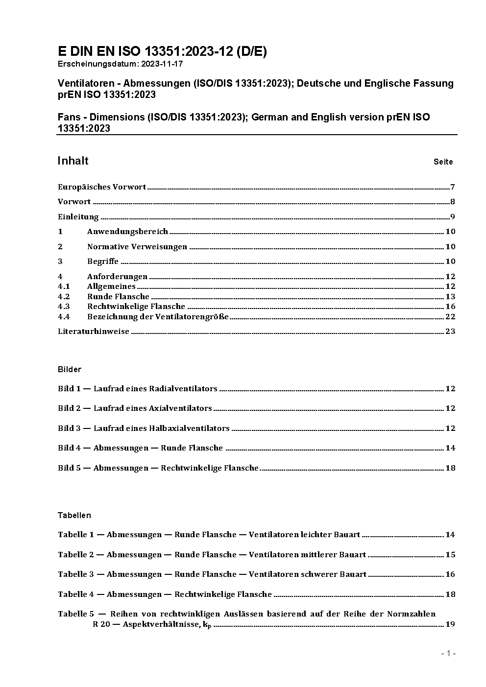 Fans - Dimensions (ISO/DIS 13351:2023); German and English version prEN ISO 13351:2023