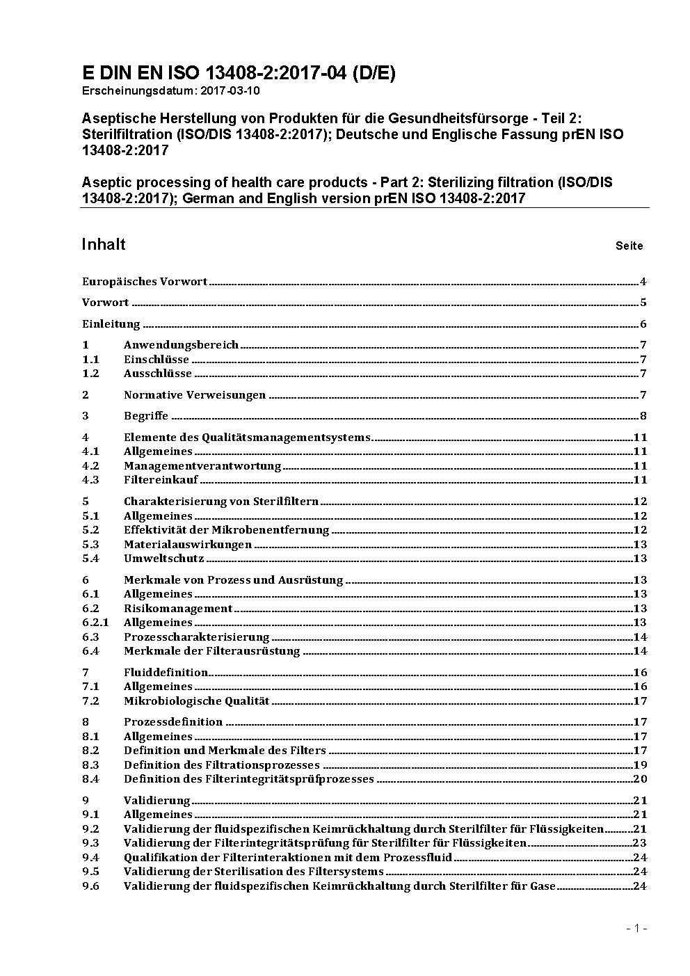 Aseptische Herstellung von Produkten für die Gesundheitsfürsorge - Teil 2: Filtration (ISO 13408-2:2003); Deutsche Fassung FprEN ISO 13408-2:2010