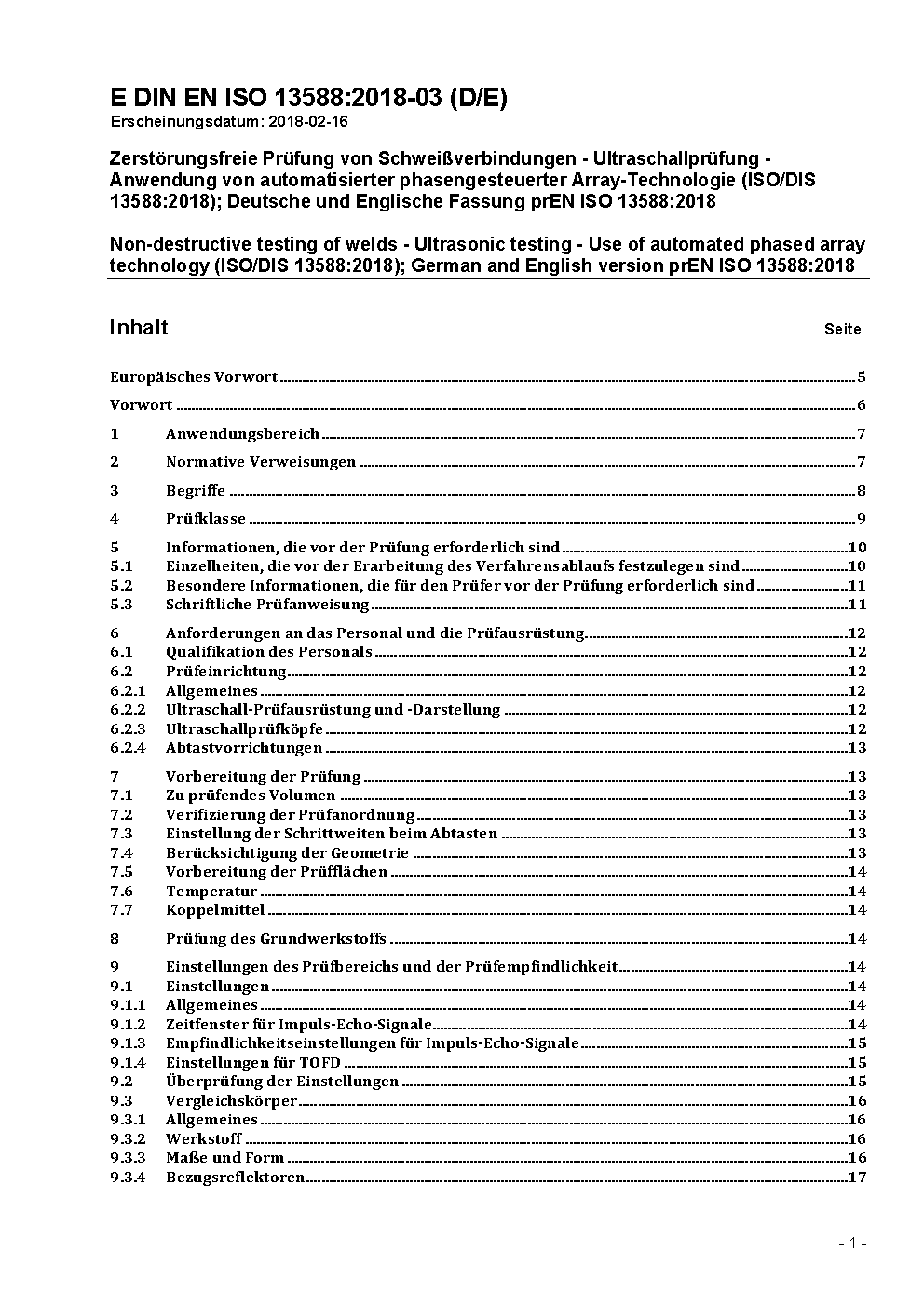 Non-destructive testing of welds - Ultrasonic testing - Use of automated phased array technology (ISO/DIS 13588:2018); German and English version prEN ISO 13588:2018