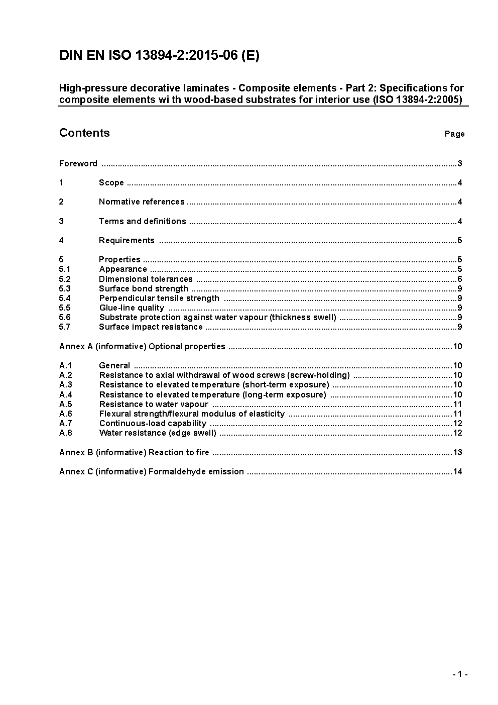High-pressure decorative laminates - Composite elements - Part 2: Specifications for composite elements with wood-based substrates for interior use (ISO 13894-2:2005); German version FprEN ISO 13894-2:2014